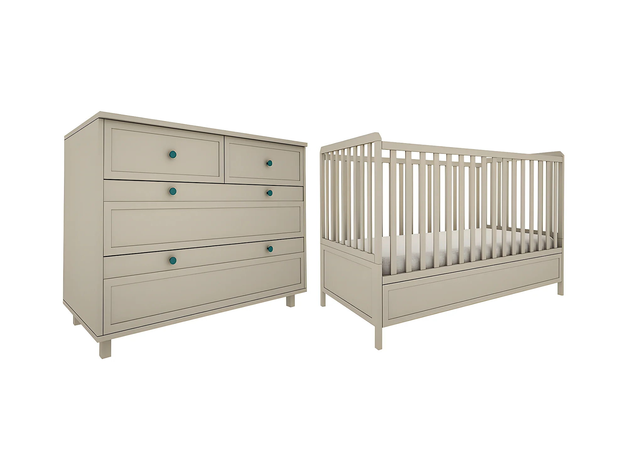 Lit évolutif 70x140 et commode 4 tiroirs Gabriel - Vert Eucalyptus