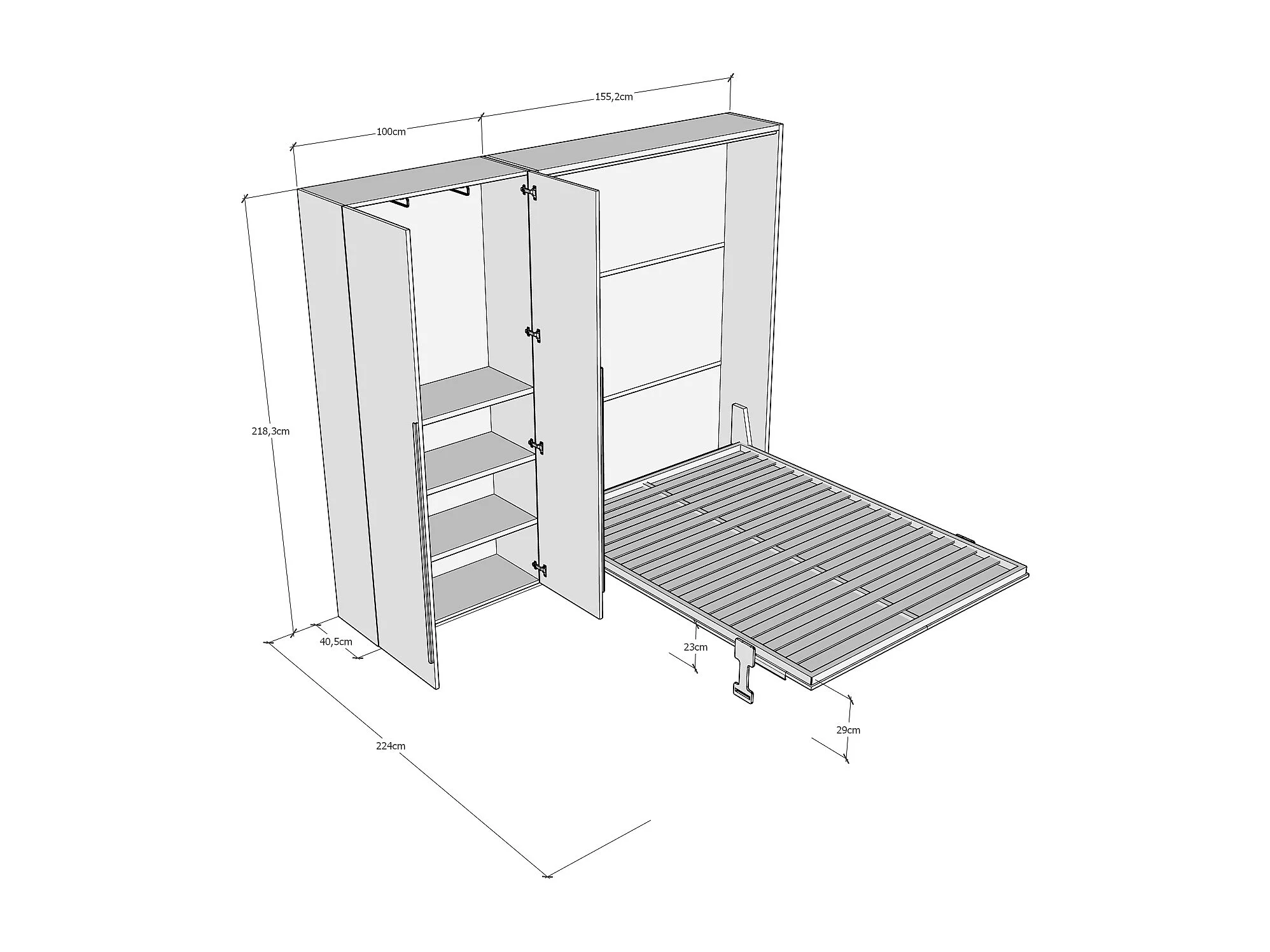 Lit français escamotable vertical Versia Sofà 140 avec armoire 2 portes droite en blanc