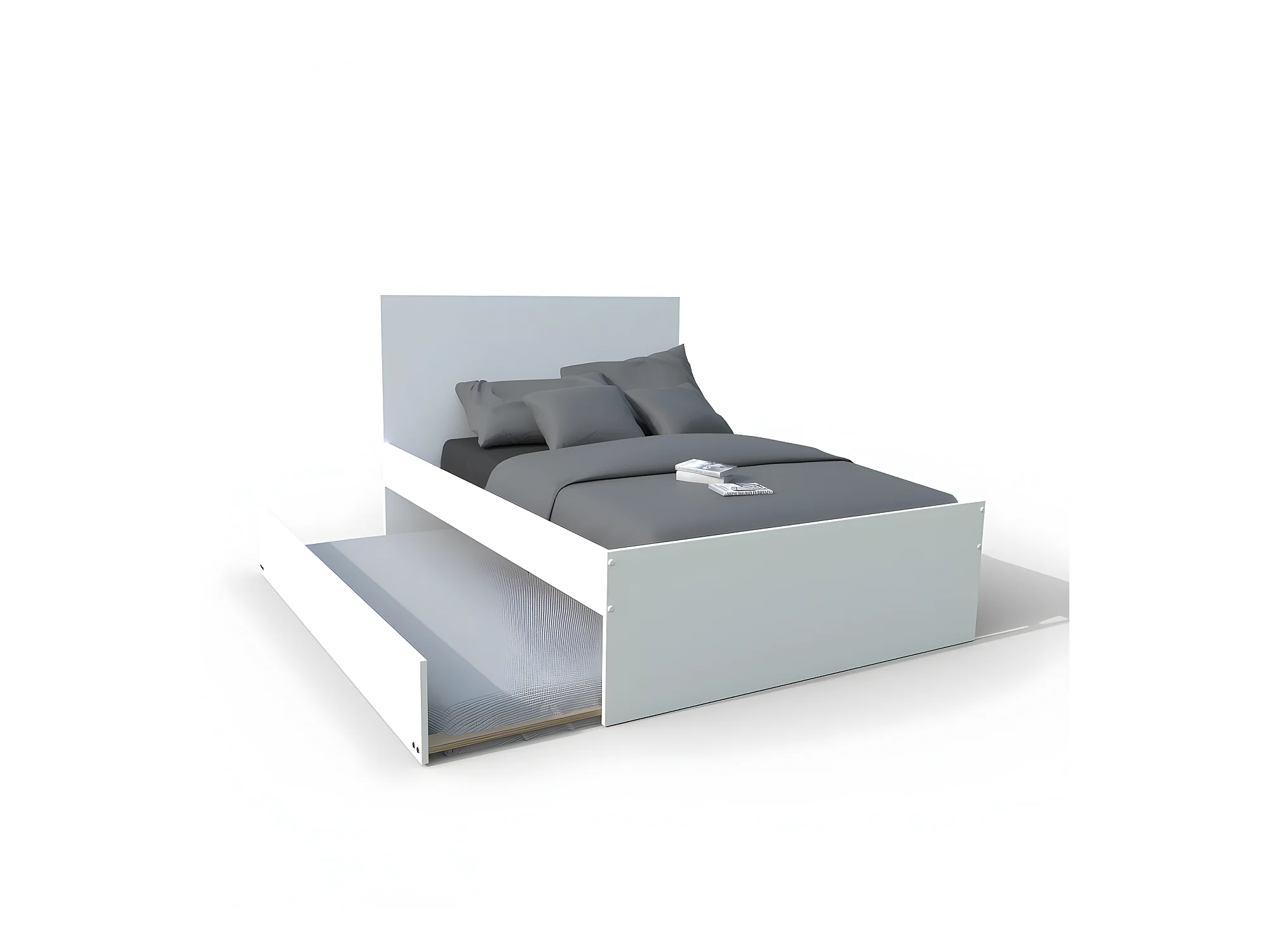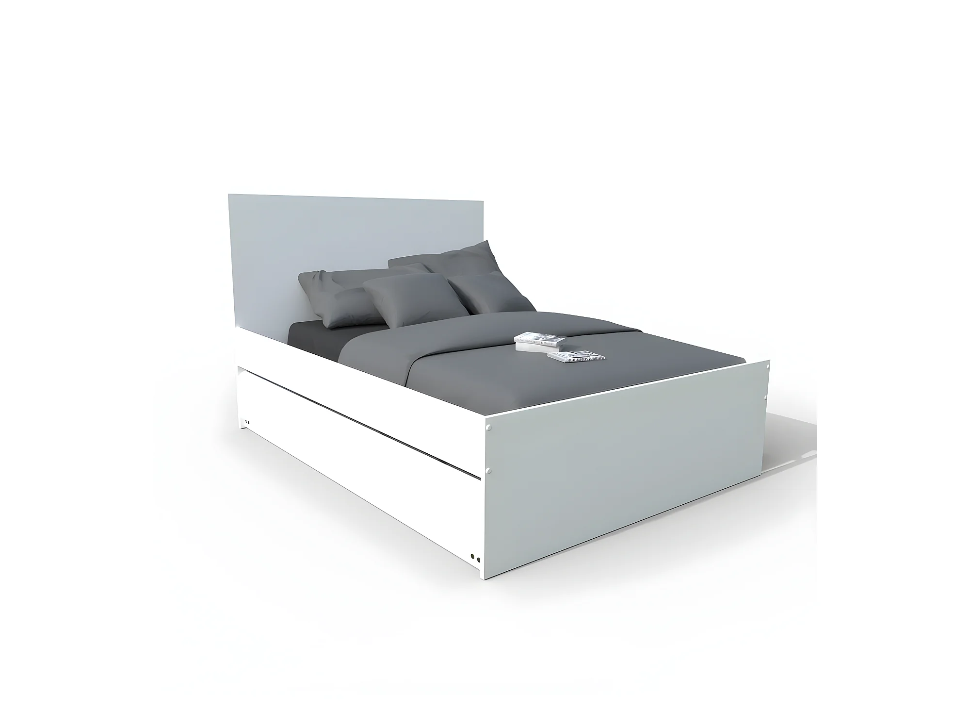 Lit double ALPHA 140x190 + 2 tiroirs + tiroir lit 90x190 avec sommier + chevet / Blanc