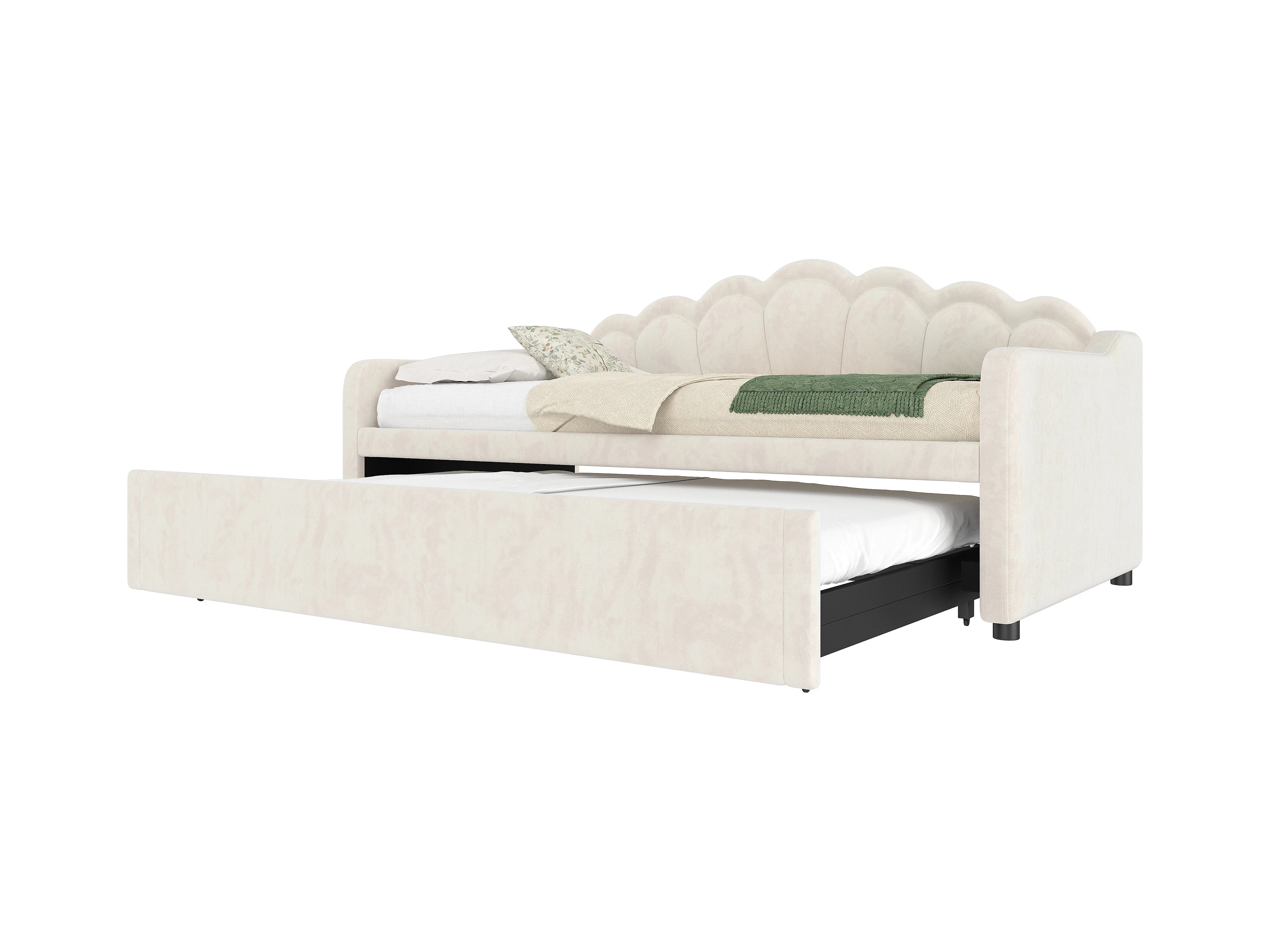 lit gigogne - 90/180 x 200 cm - canapé-lit avec Leds - sans matelas - velours + MDF - beige