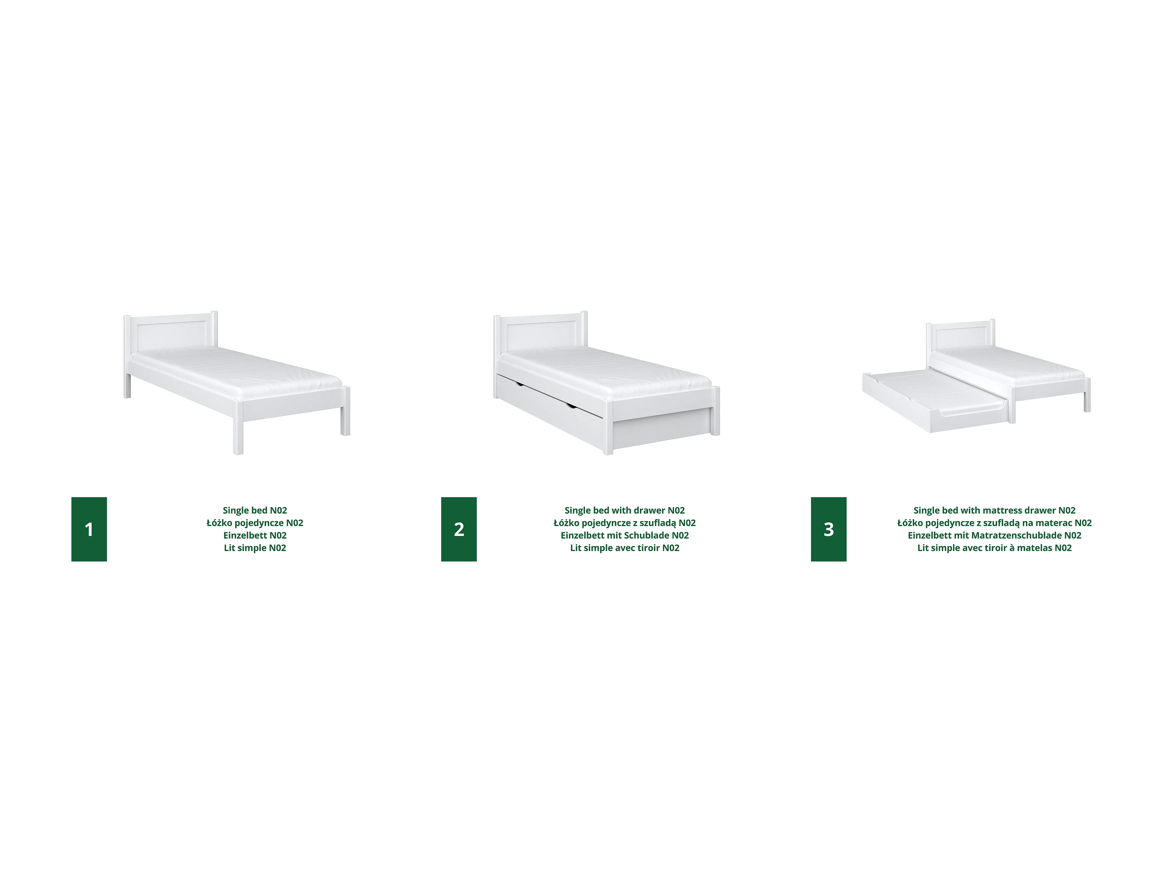 Lit gigogne en bois N02 Blanc 120x180