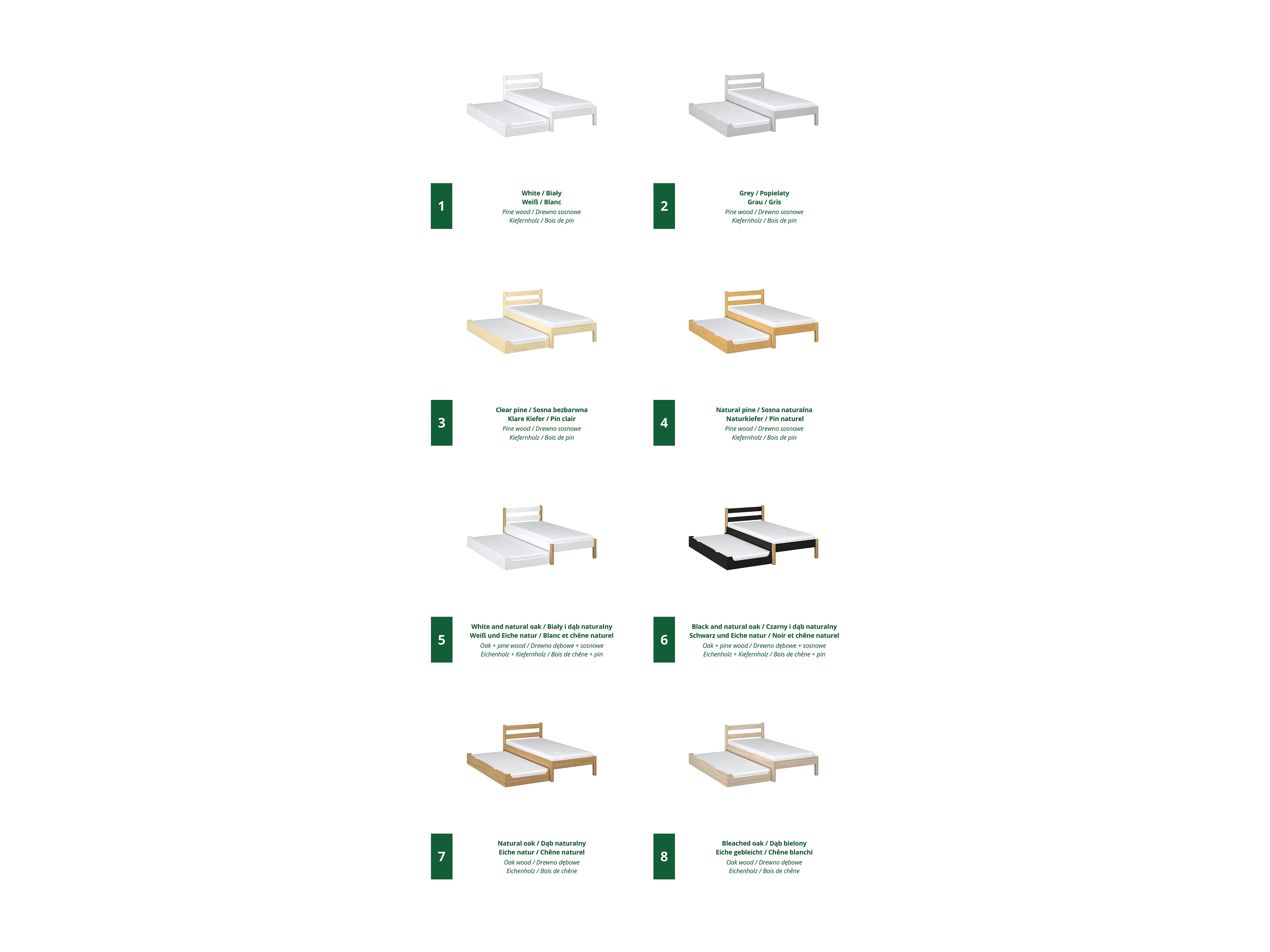 Lit gigogne en chêne N01 Chêne Naturel 100x190