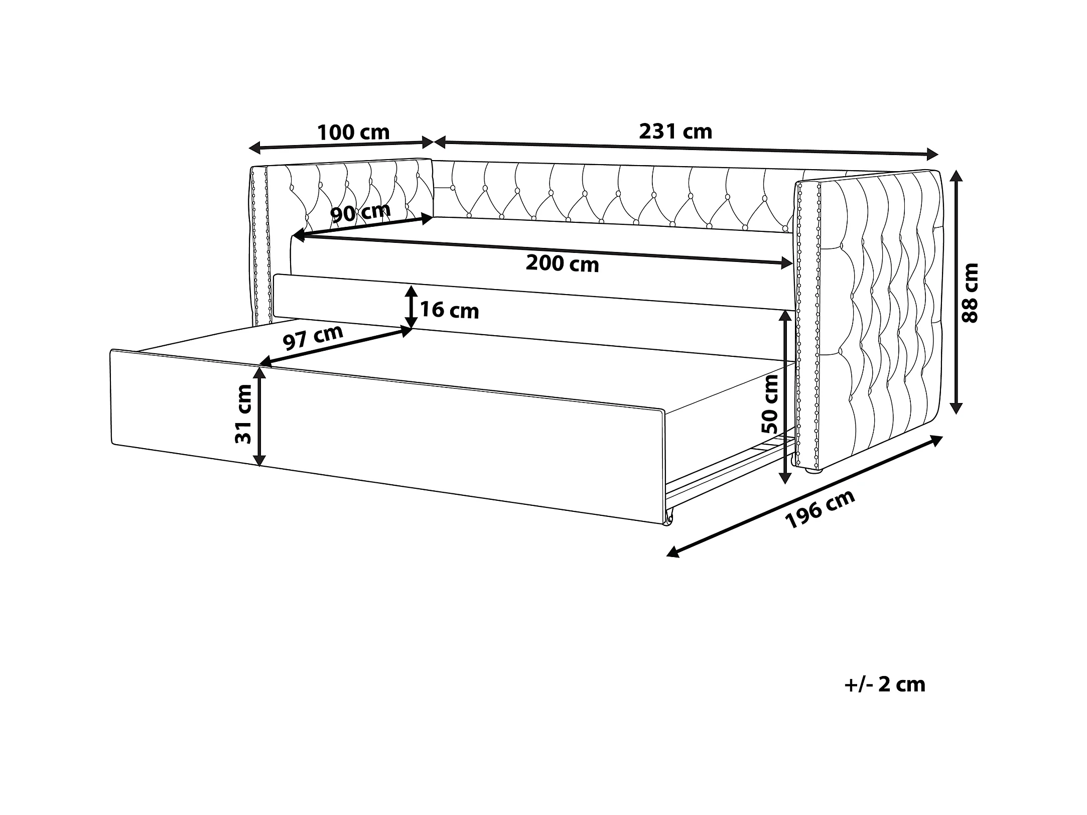 Lit gigogne Velours GASSIN 90 x 200 cm Gris