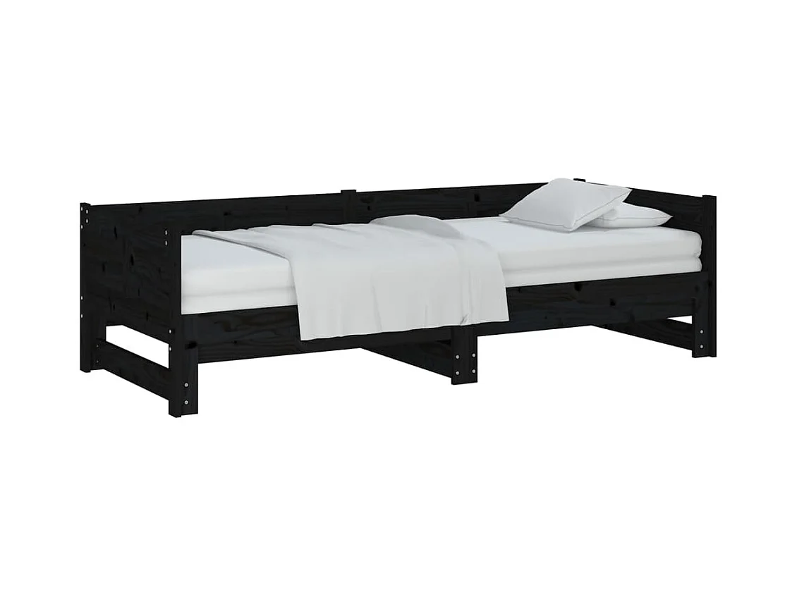 Lit gigogne Noir Bois de pin solide 2x(90x200) cm HOQW92273