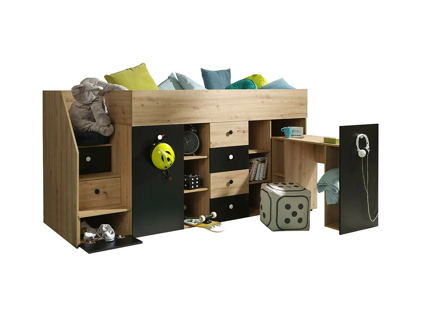 Lit haut Hartford 361, Unique, Brun clair, 90x200, Stratifié, Sommier à lattes, 94x249cm