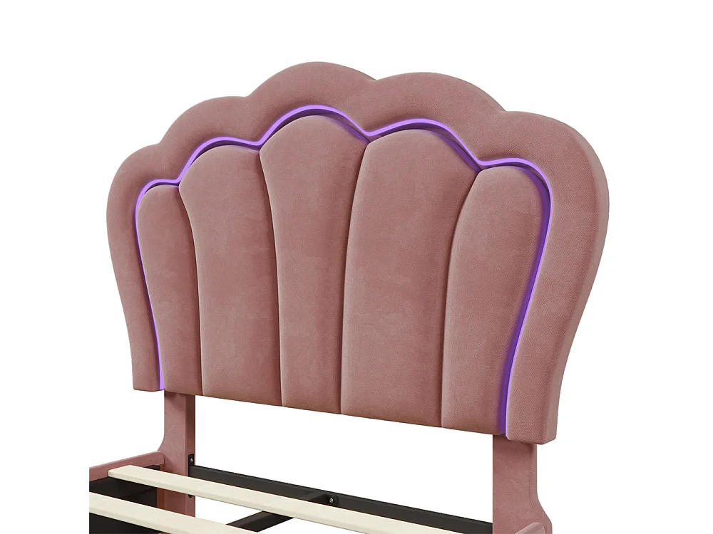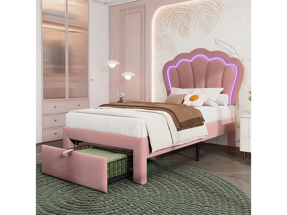 Lit jeune lit 90x190 cm lit simple lit rembourré lit sommier à lattes avec 1 tiroir velours rose