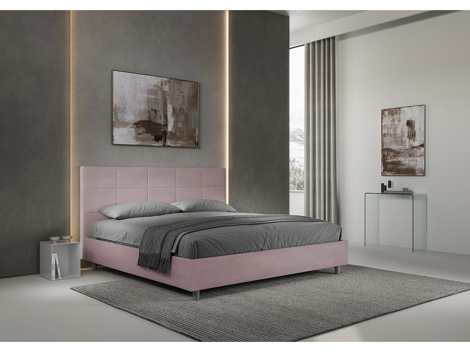 Lit king size sans sommier rembourré 180x200 microfibre lilas Mika