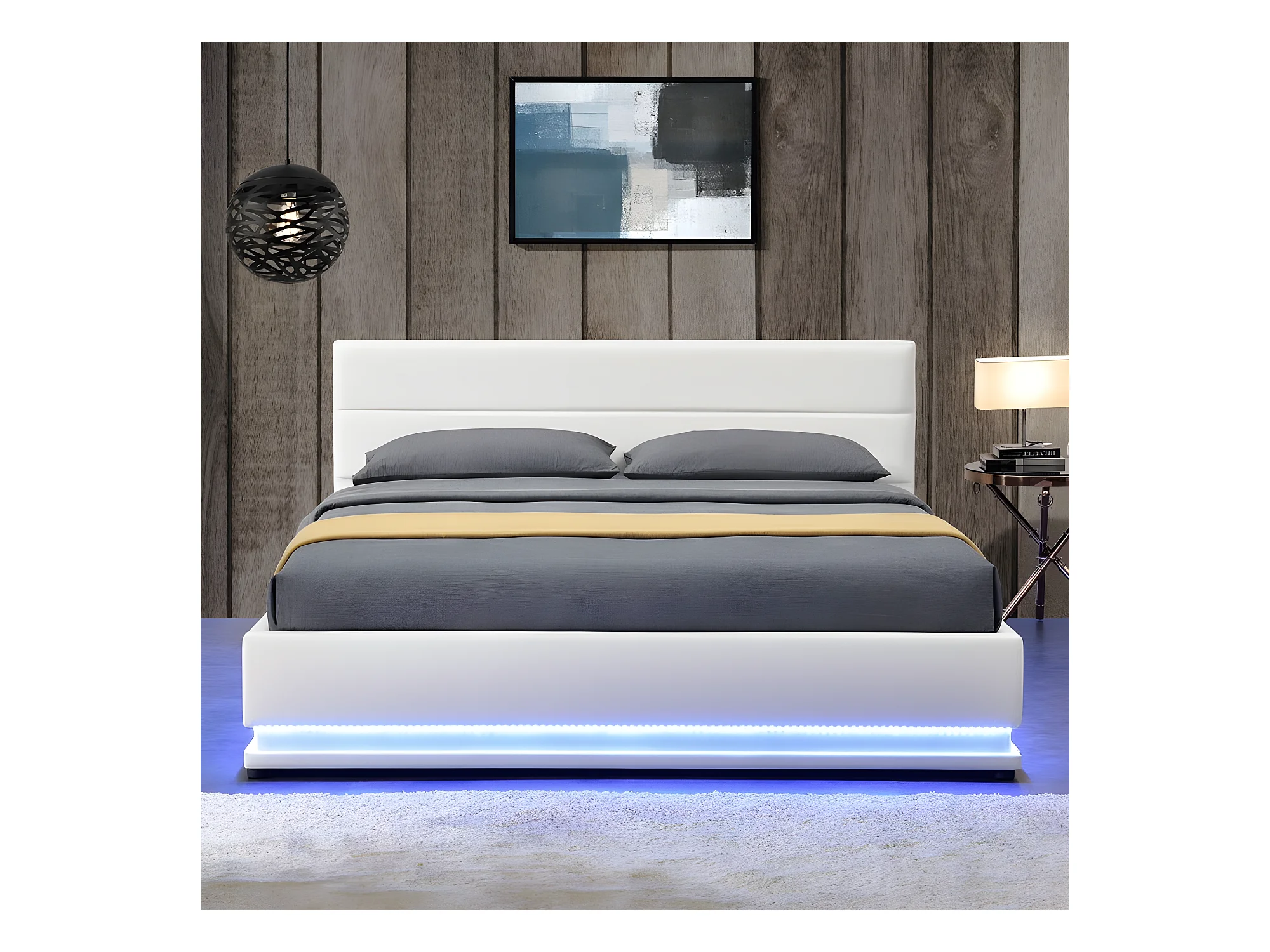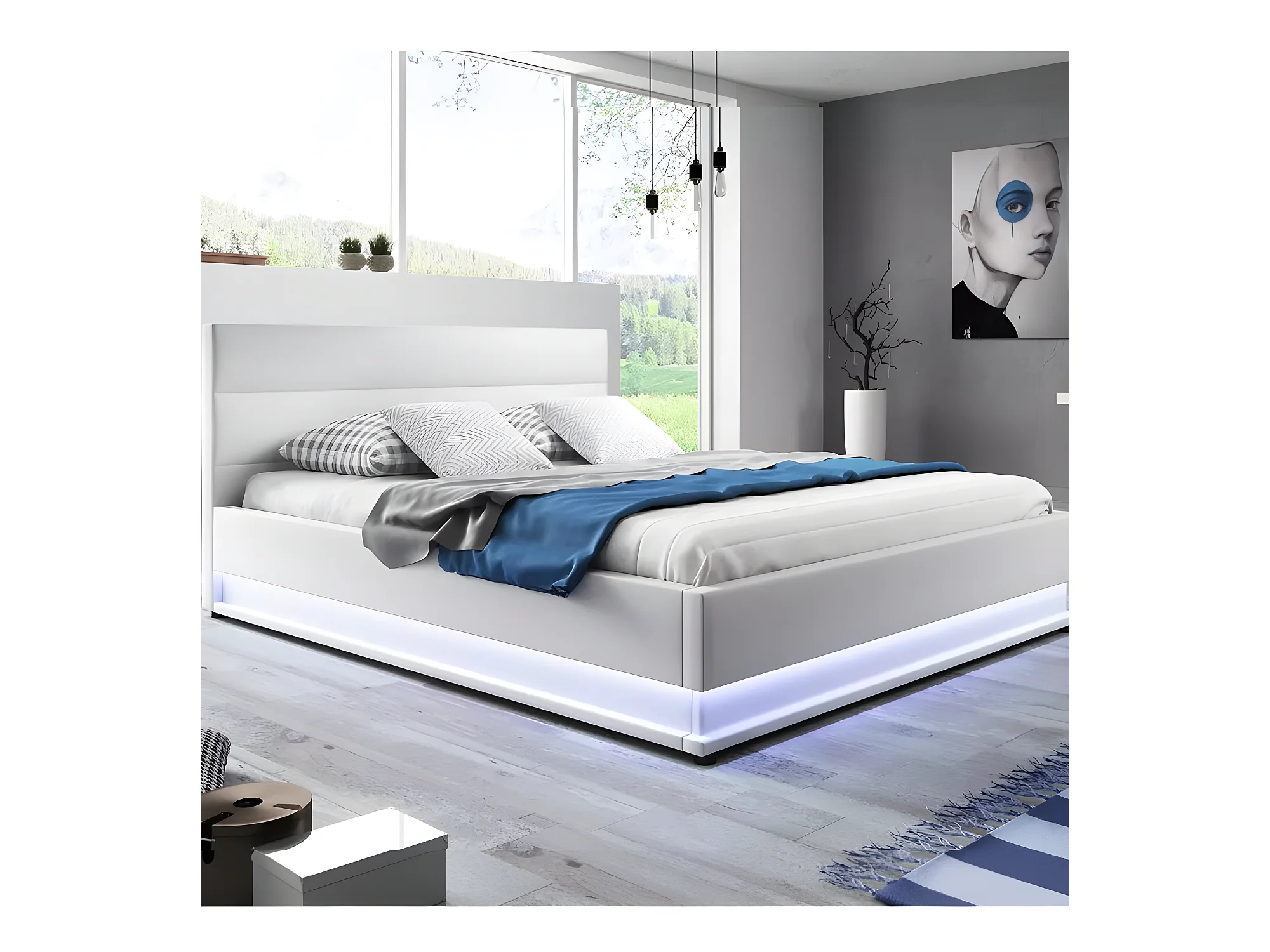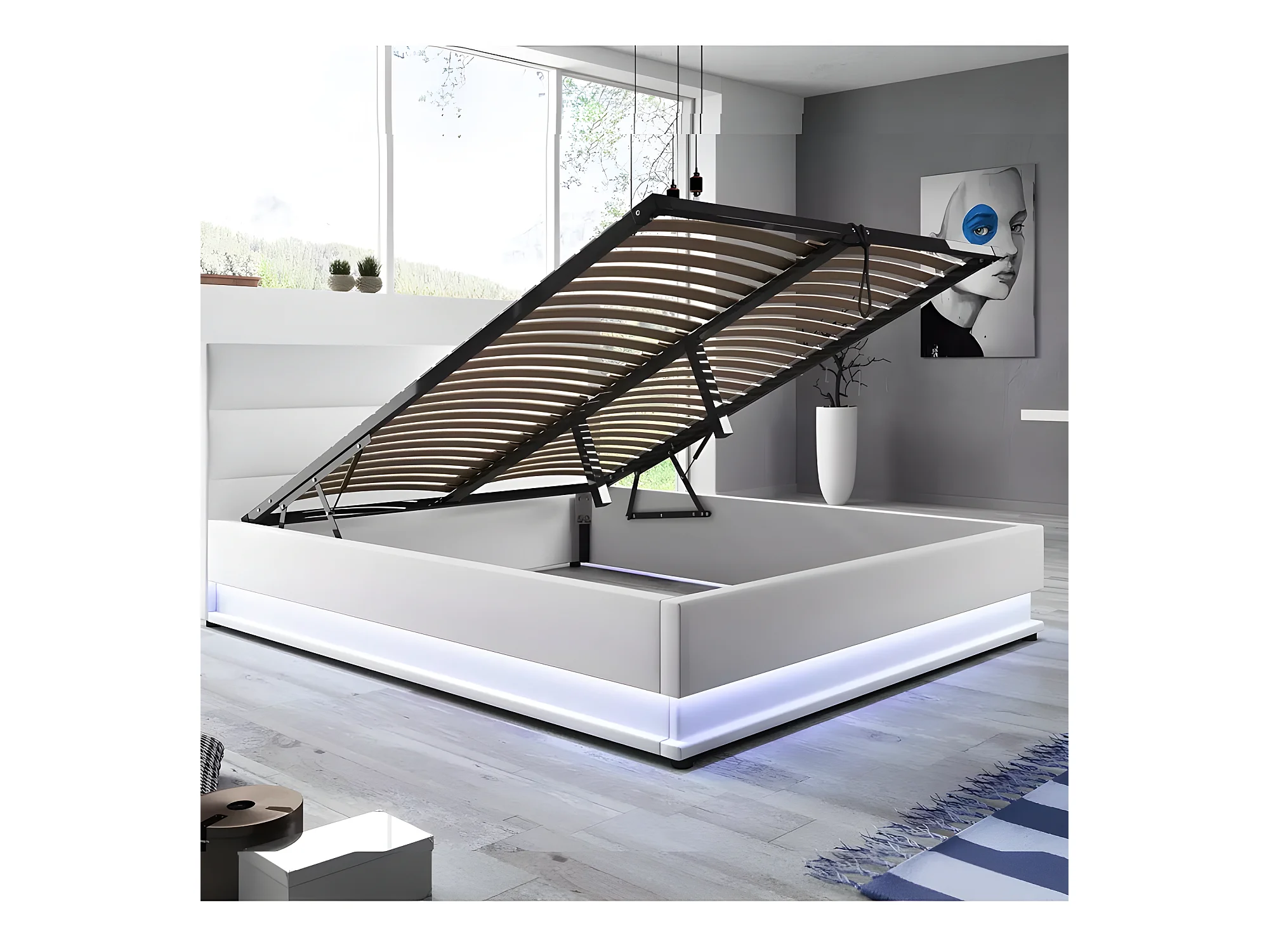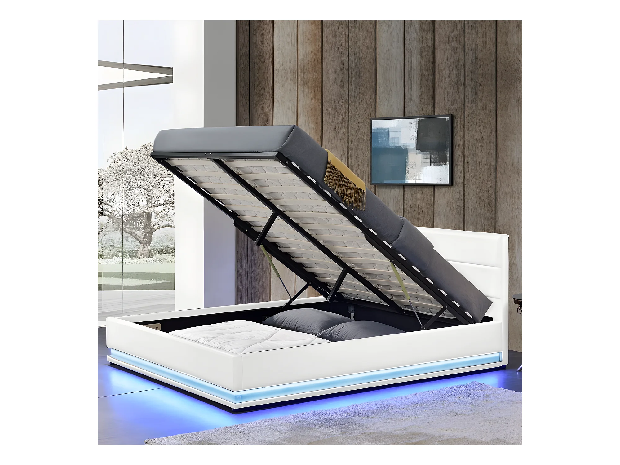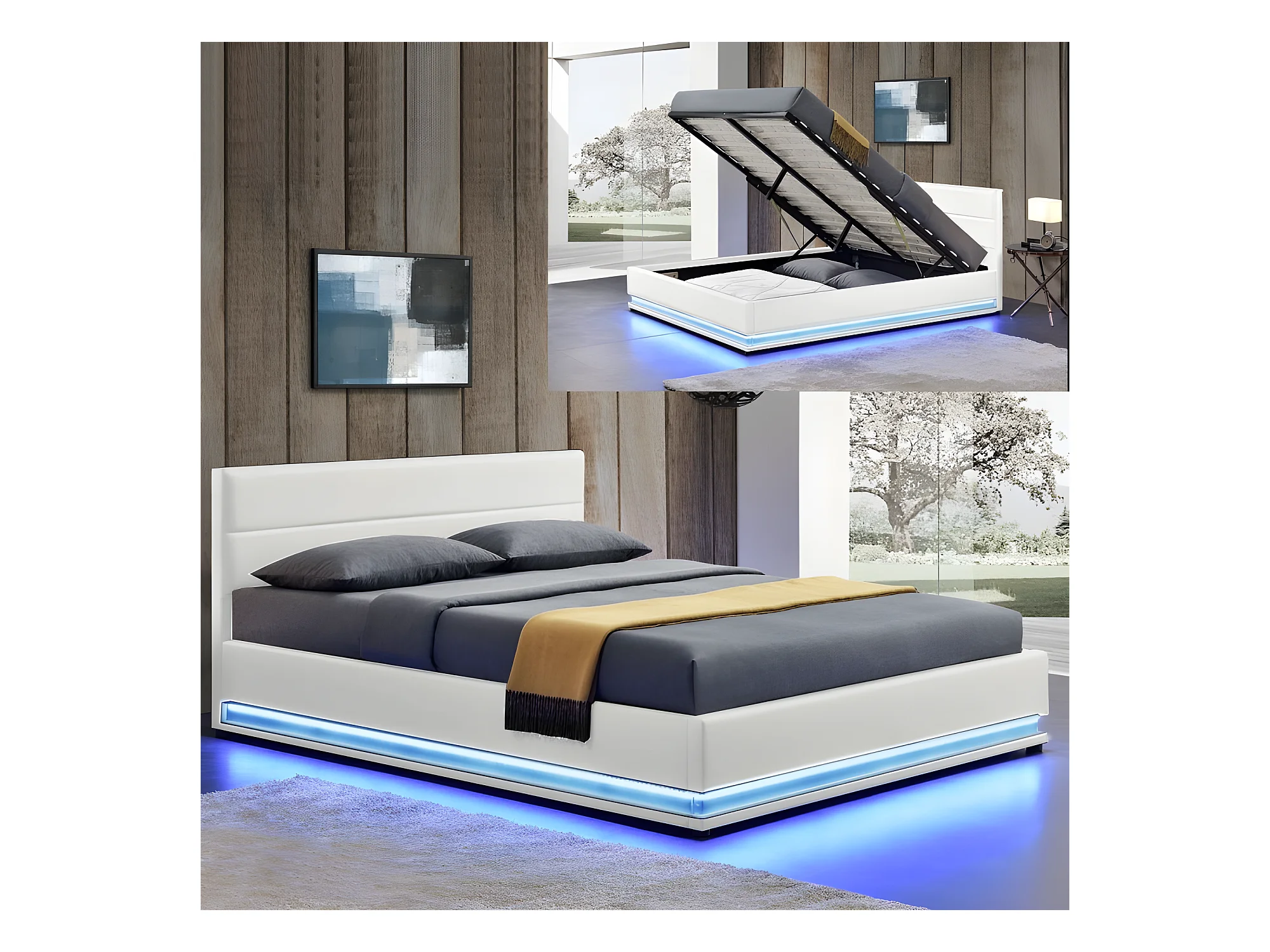 Lit Led Avec Coffre De Rangement Ava - Couleurs - Blanc, Tailles - 140x190