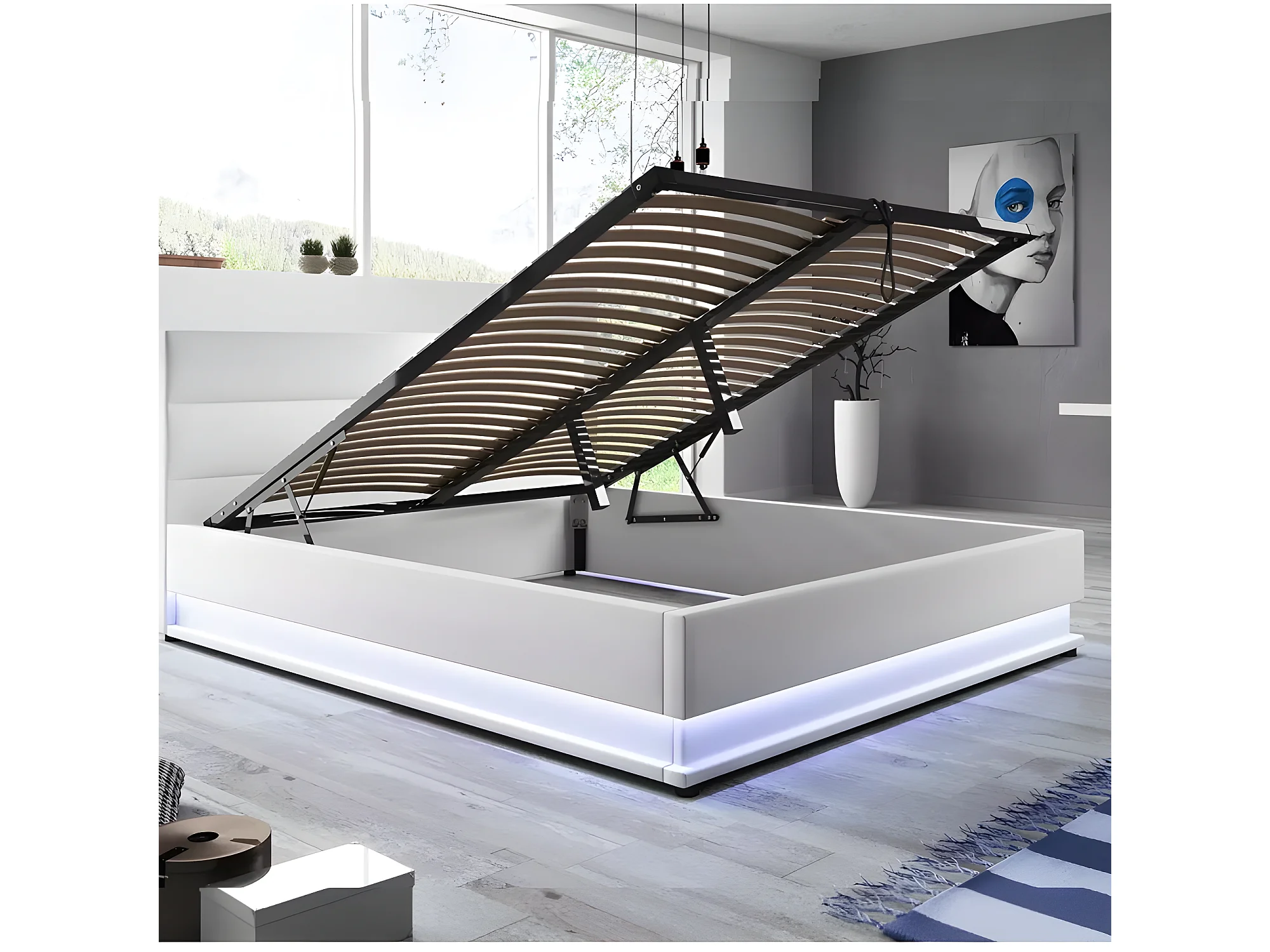Lit Led Avec Coffre De Rangement Ava - Couleurs - Blanc, Tailles - 160x200