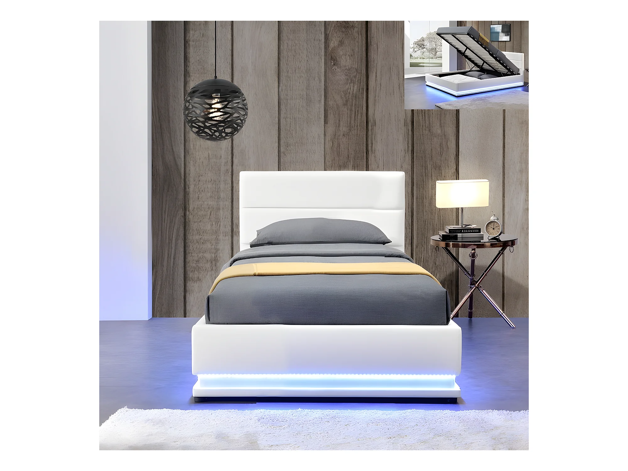 Lit Led Avec Coffre De Rangement Ava - Couleurs - Blanc, Tailles - 90x190
