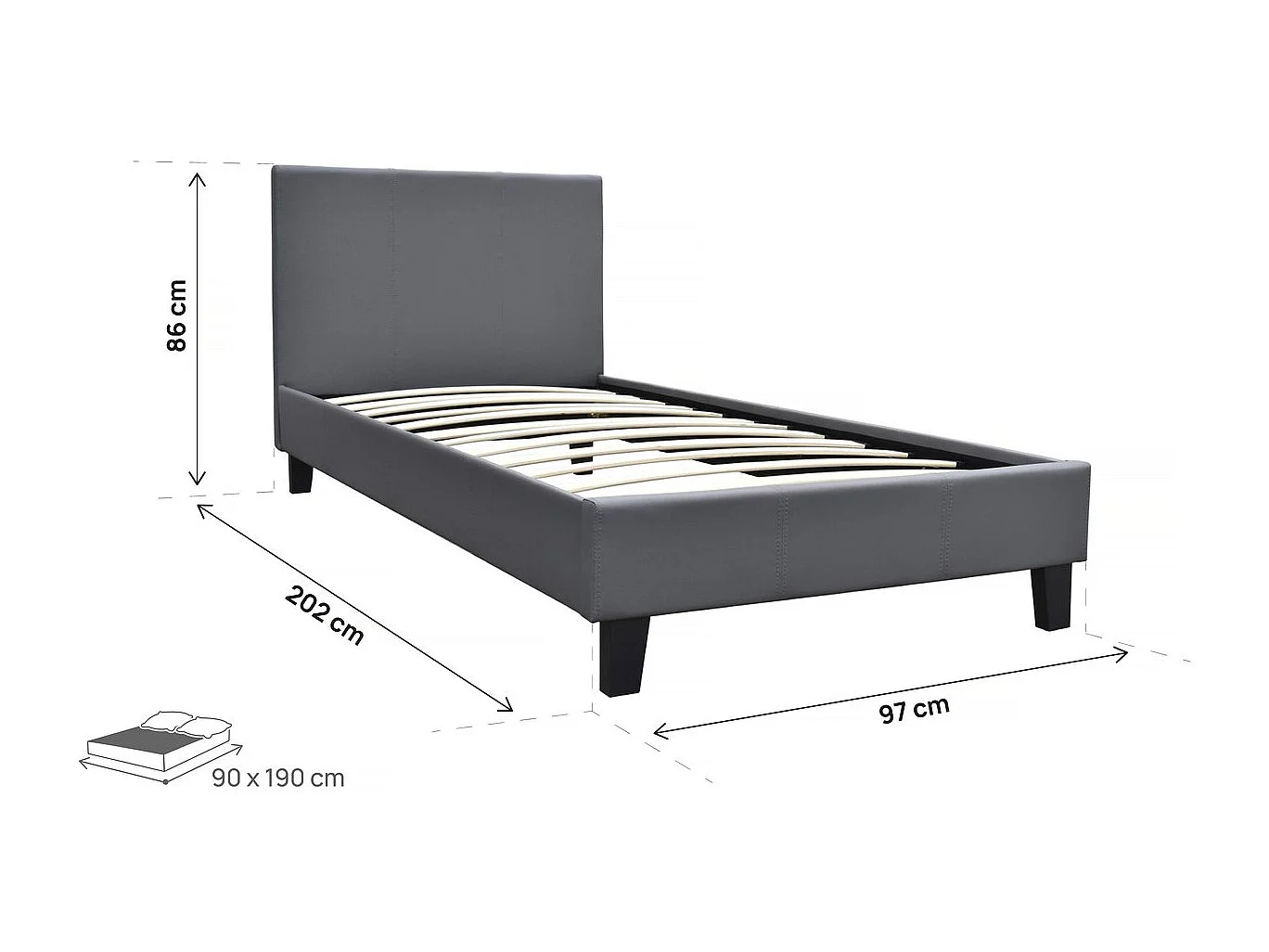 Lit "Lina" - 90 x 190 cm - Gris foncé