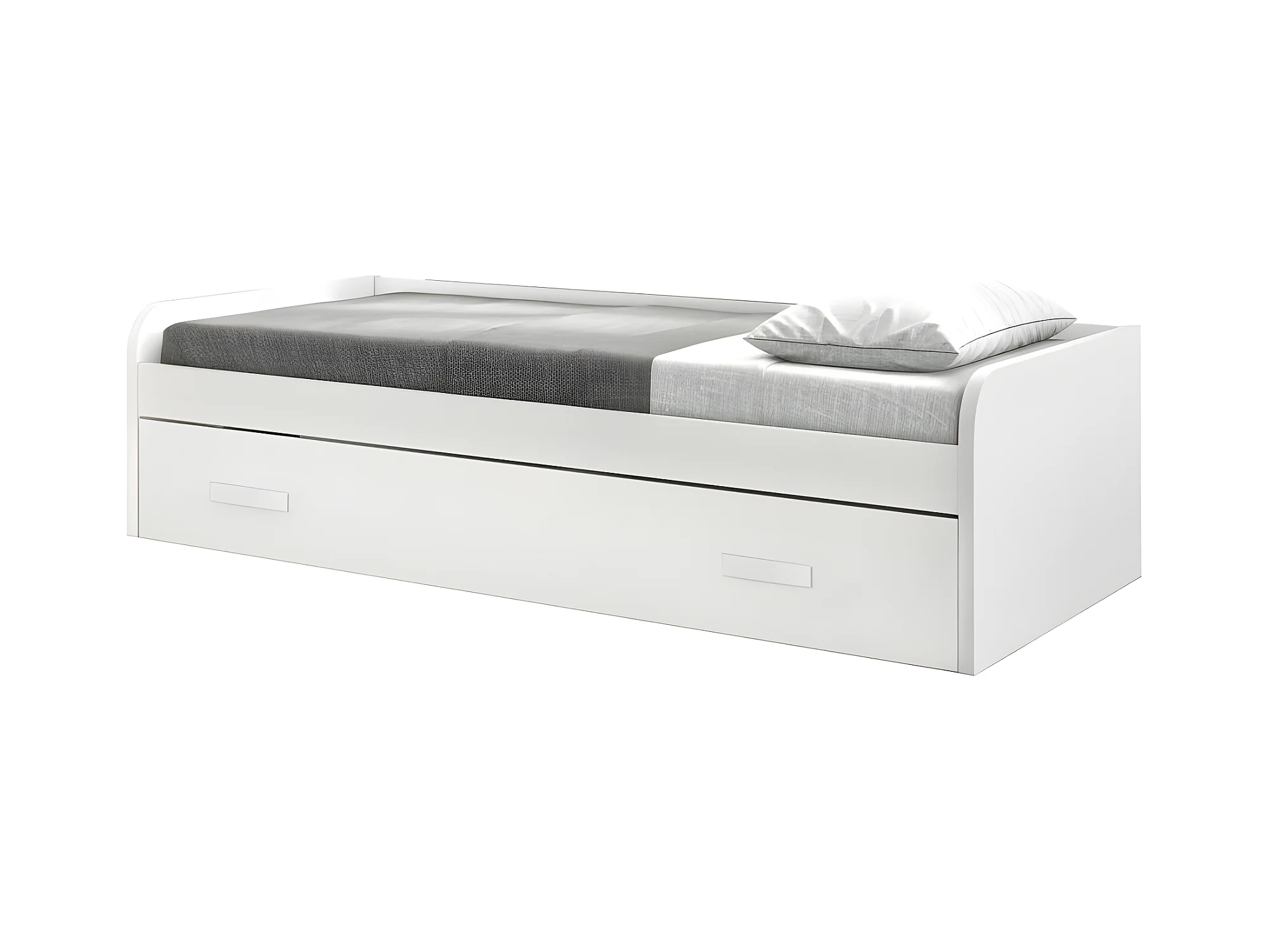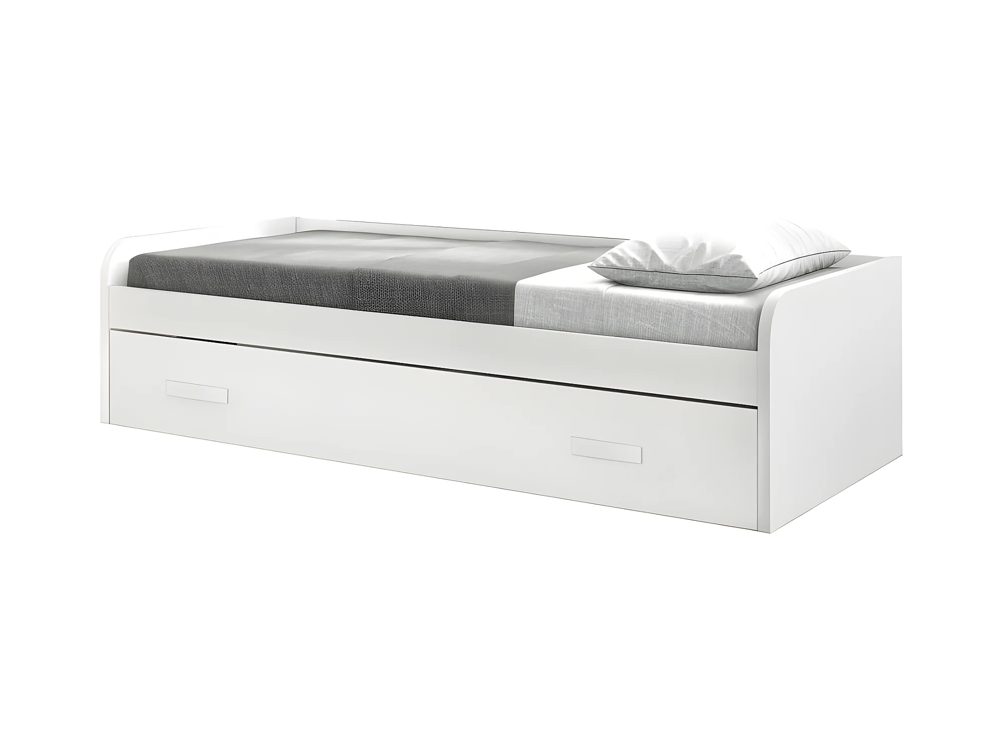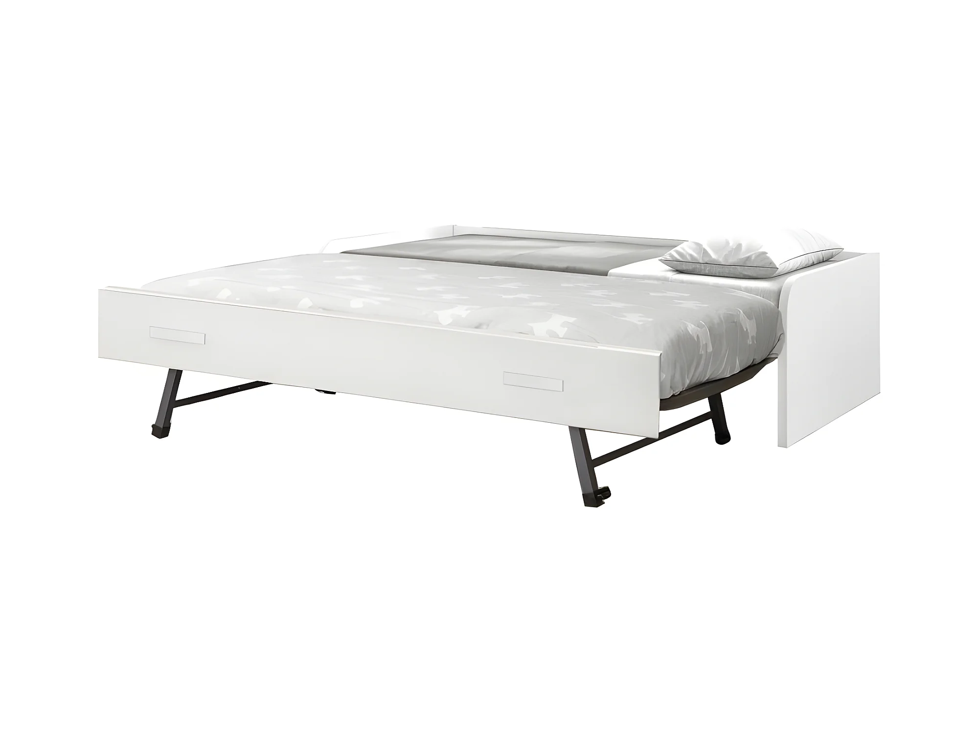 Lit + lit pieds pliants aggloméré blanc avec sommier 105/90 cm