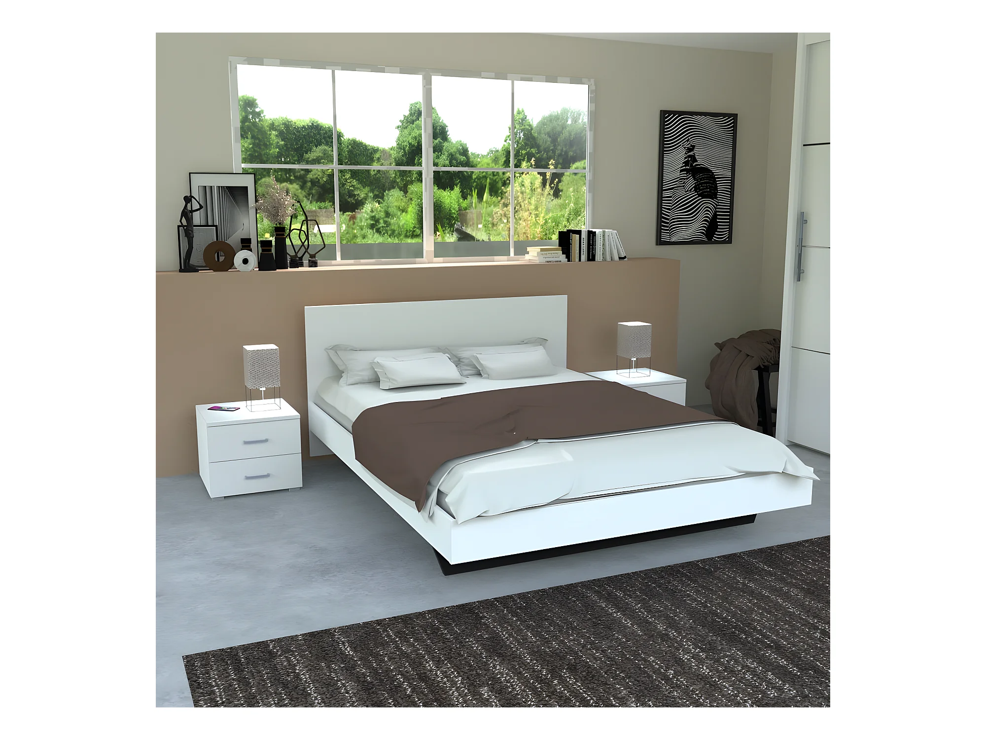 Lit LOFT 140x190 + 2 chevets + sommier + tête de lit / Blanc
