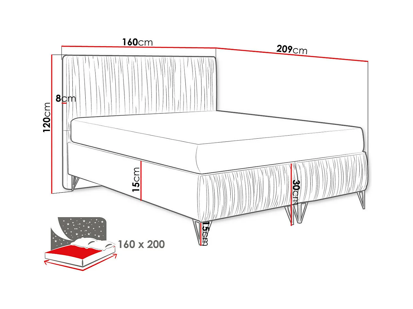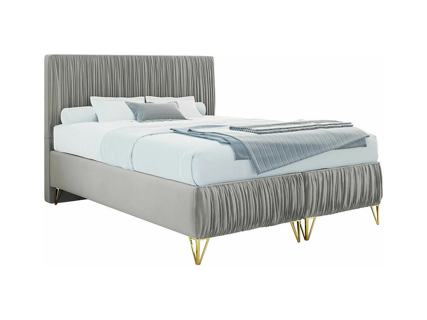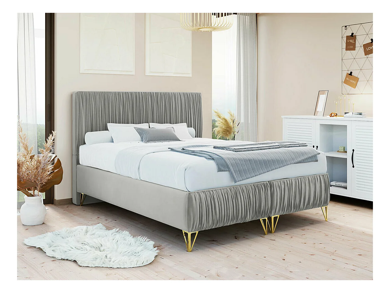 Lit continental Logan 112, Double, Gris, 160x200, Tapisserie, Sommier à lattes, 160x209cm