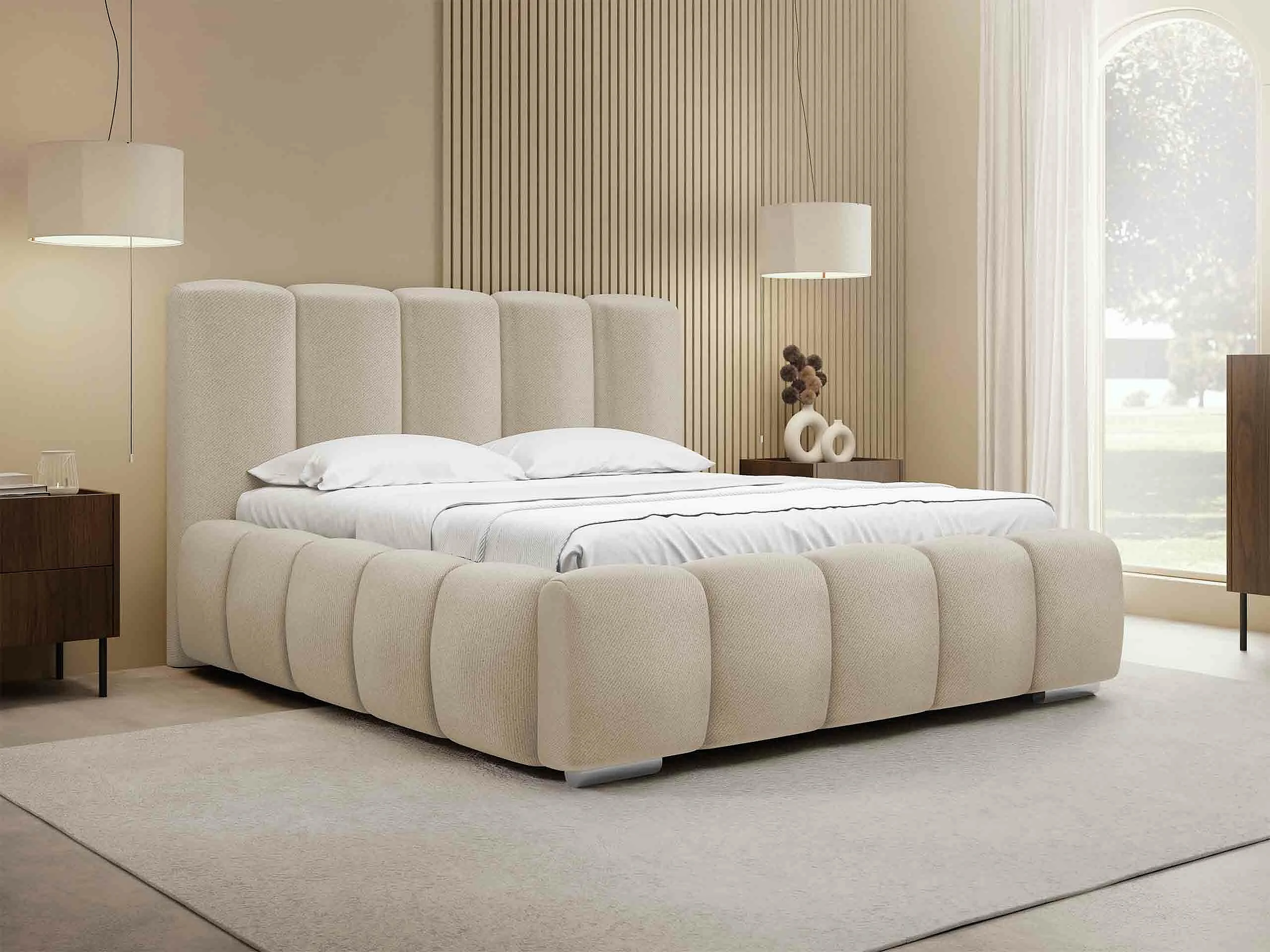 Lit TrendyNest 106, Double, Brun clair, 180x200, Tapisserie, Sommier à lattes, 200x222cm