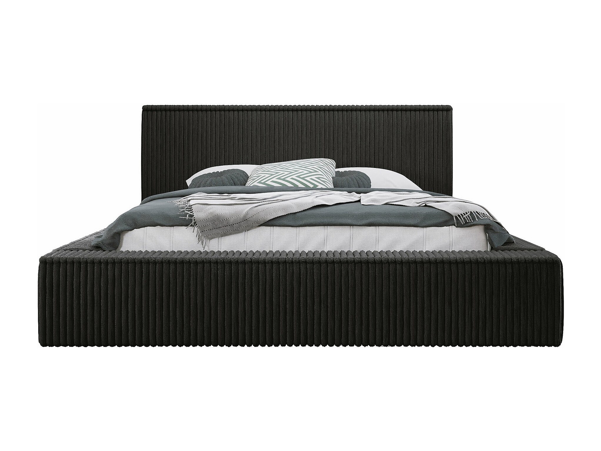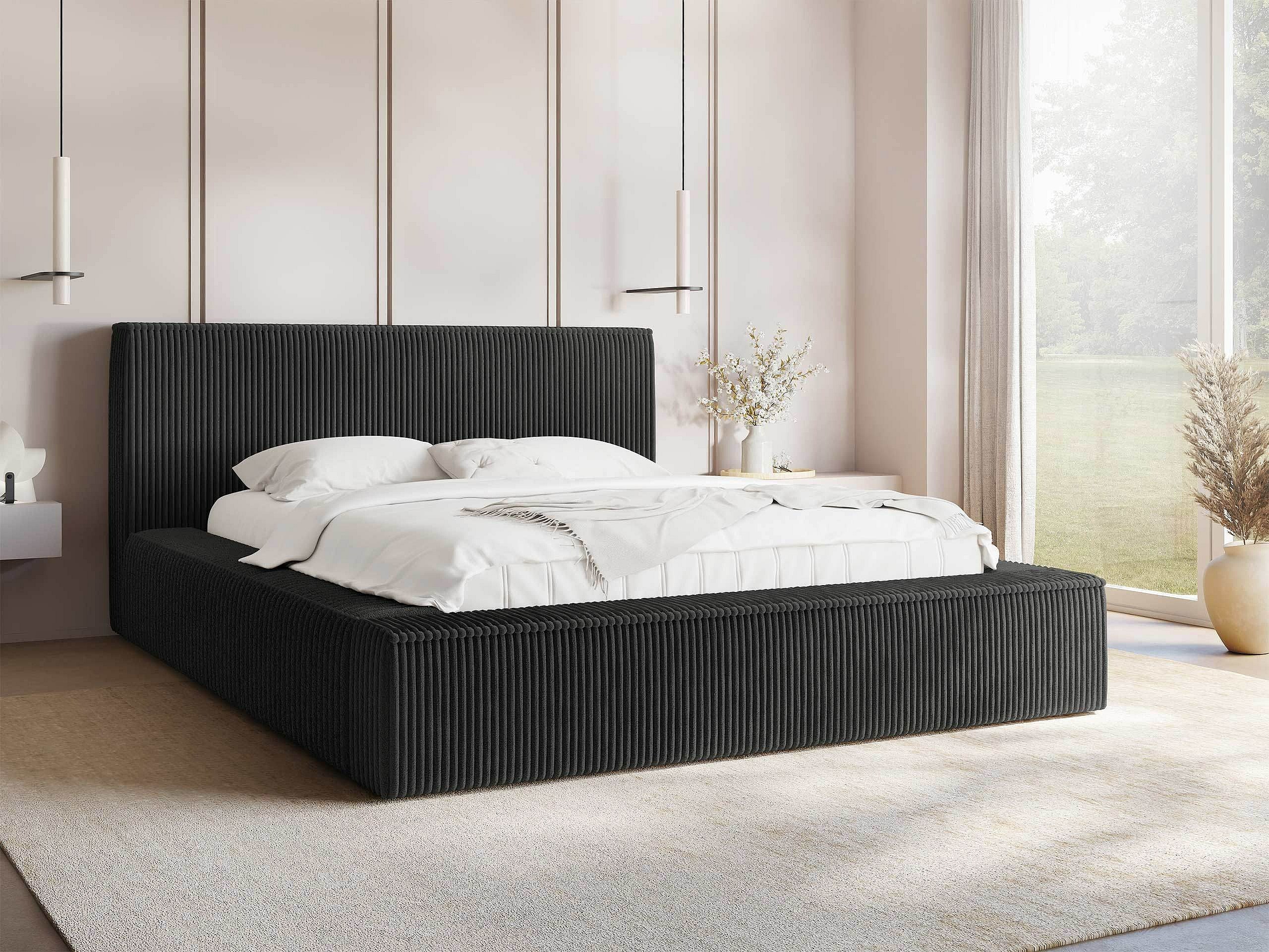 Lit TrendyNest 107, Double, Noir, 180x200, Tapisserie, Sommier à lattes, 212x230x81cm