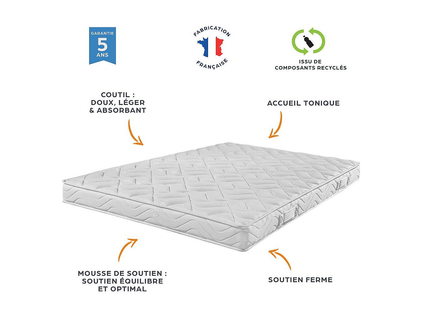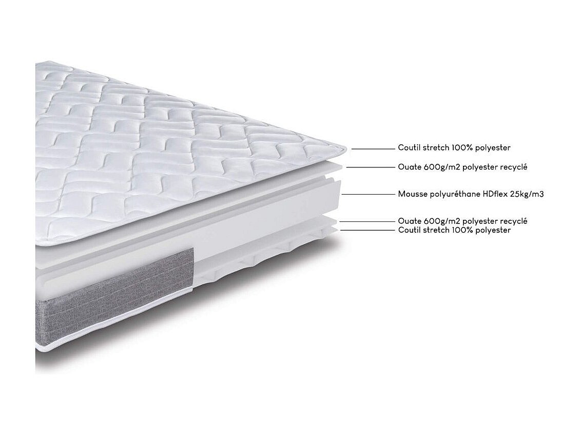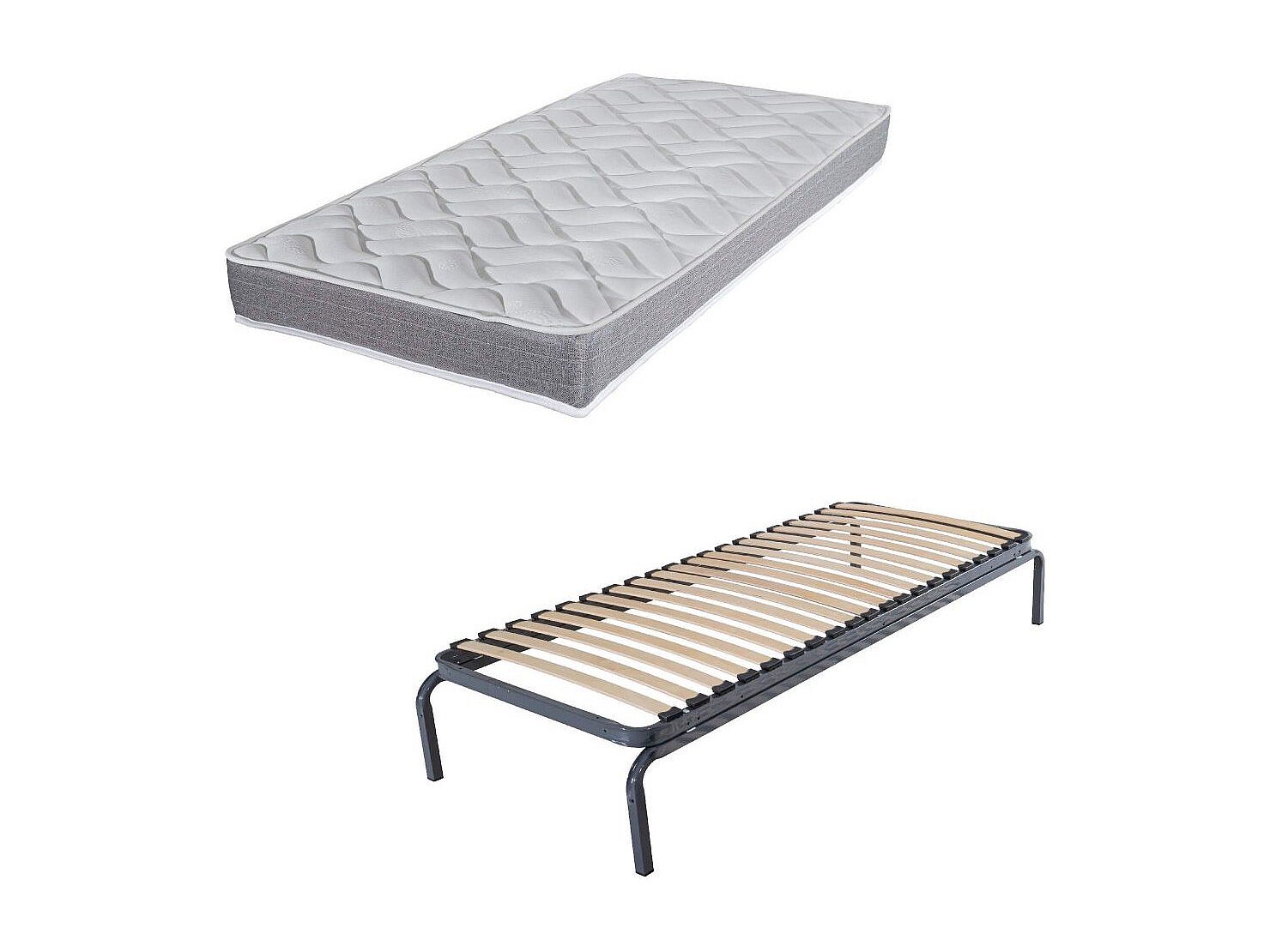 Lit métal + matelas Morgan - 80x190 - Mousse - 20 lattes bois - Gain de place