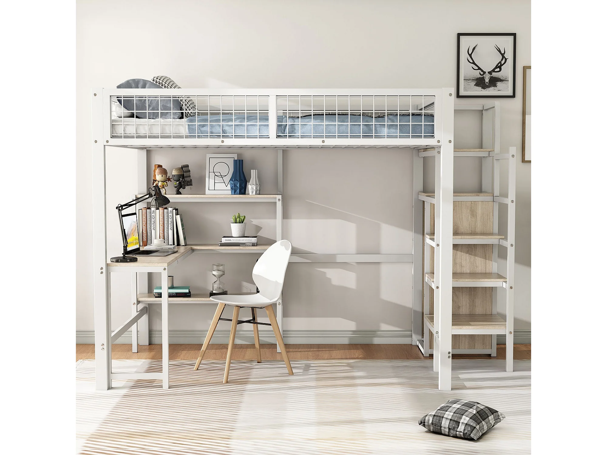 lit mezzanine 140x200 cm - avec étagères - blanc - sans matelas
