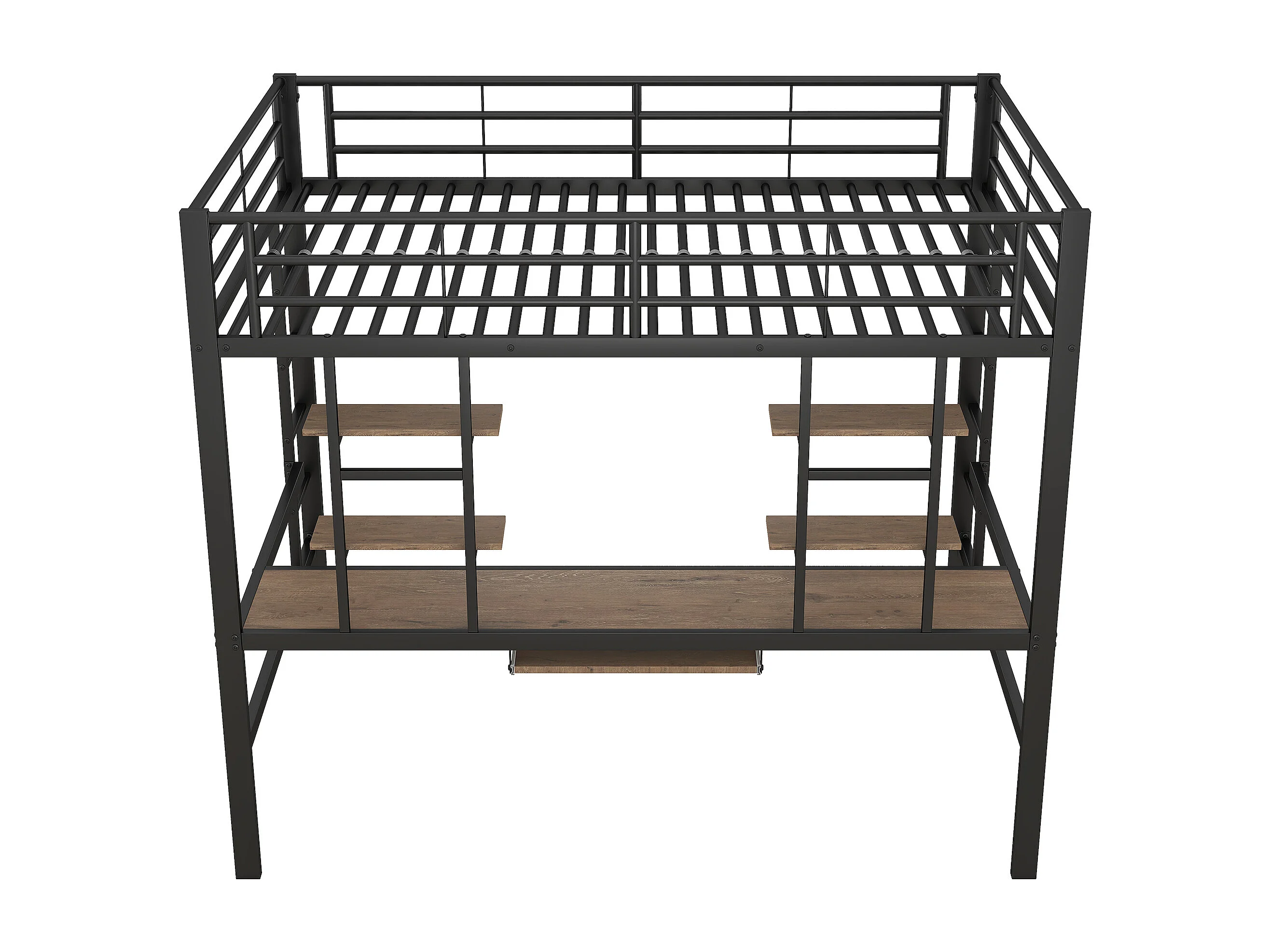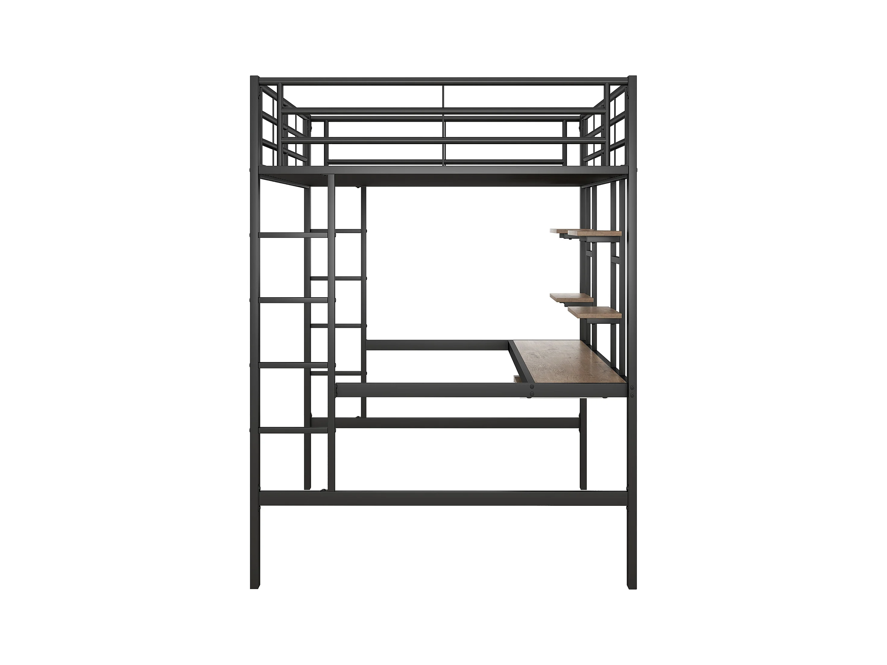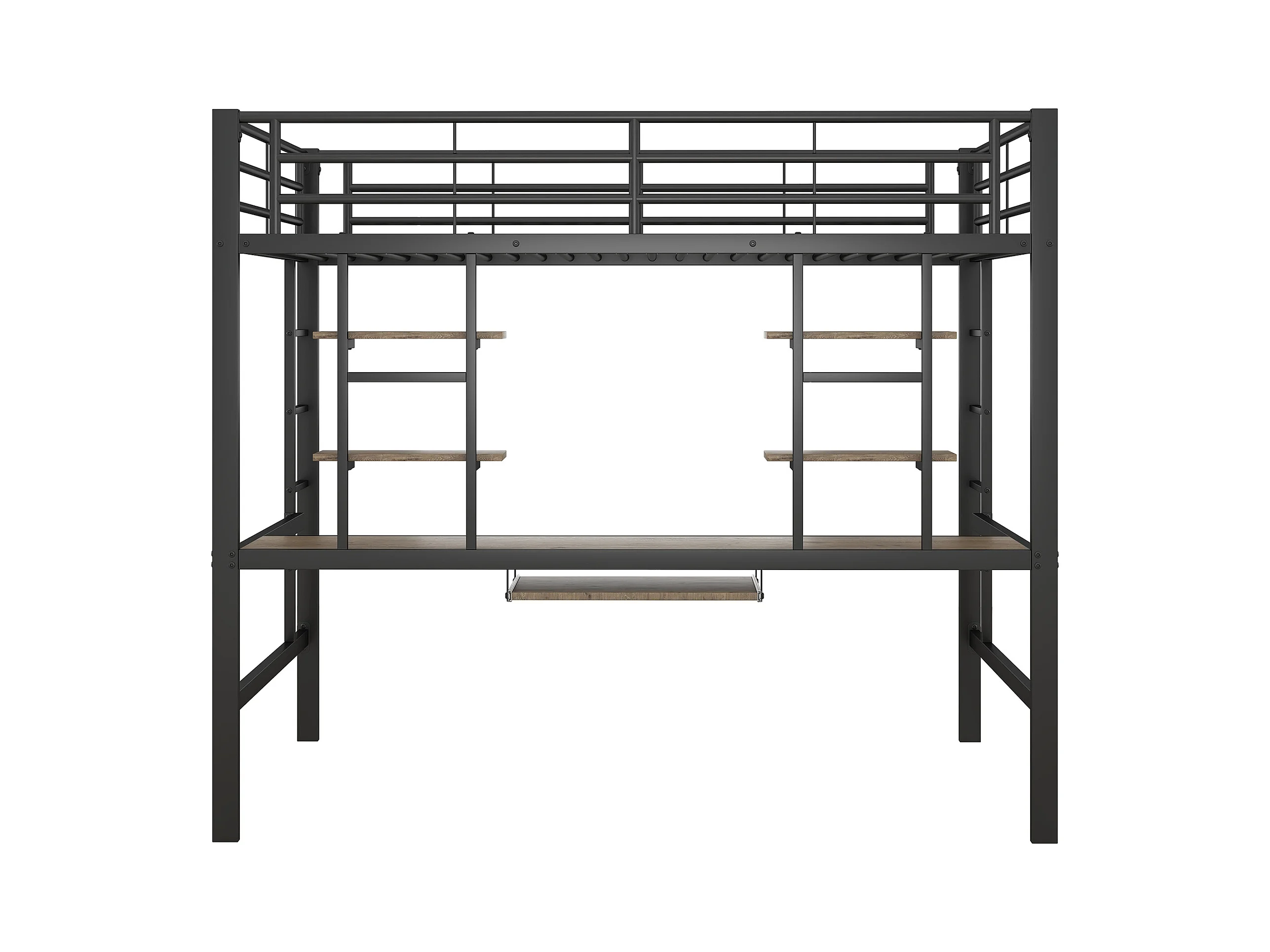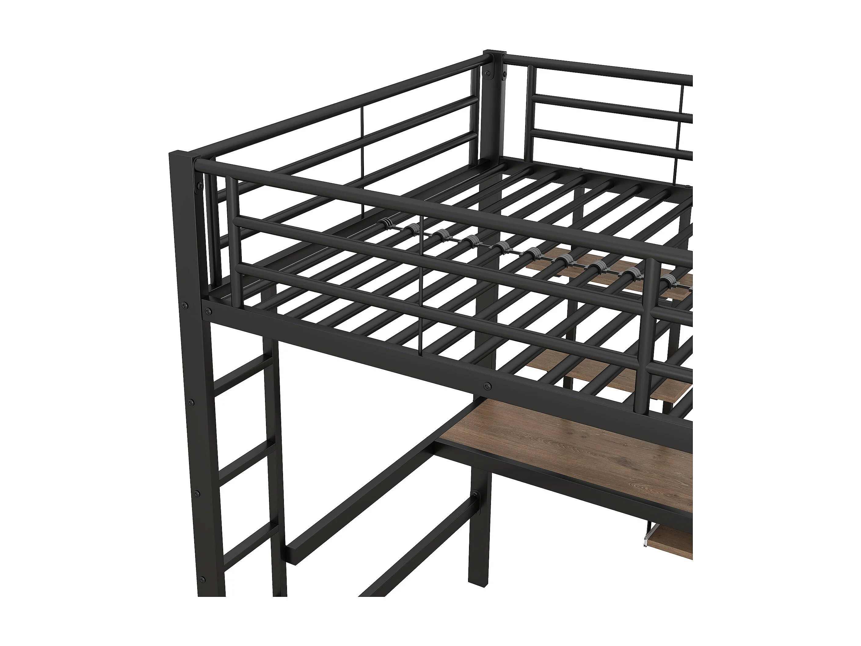 Lit mezzanine 140x200 cm - Lit adulte avec bureau et étagère de rangement - structure métallique - noir