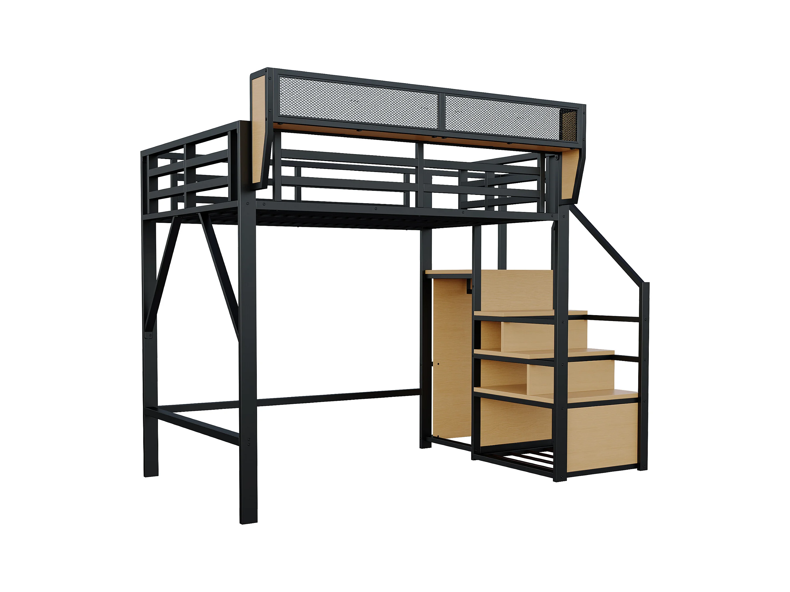 Lit mezzanine 140x200cm - avec échelle - rangements modulables - métal - noir (sans matelas)