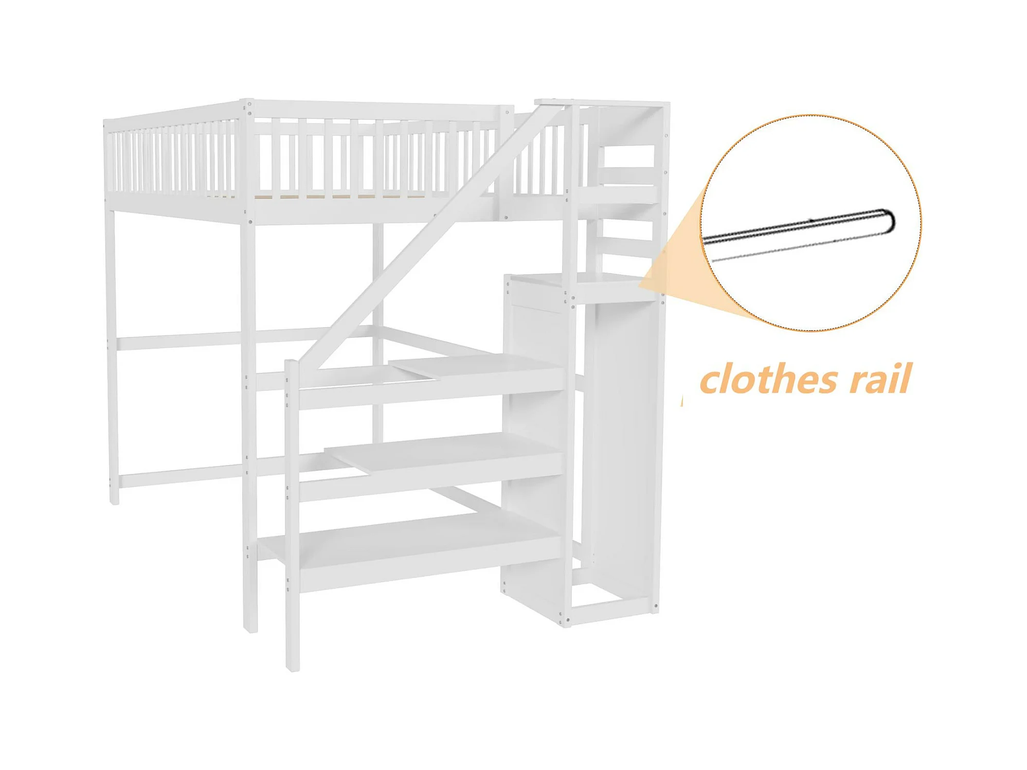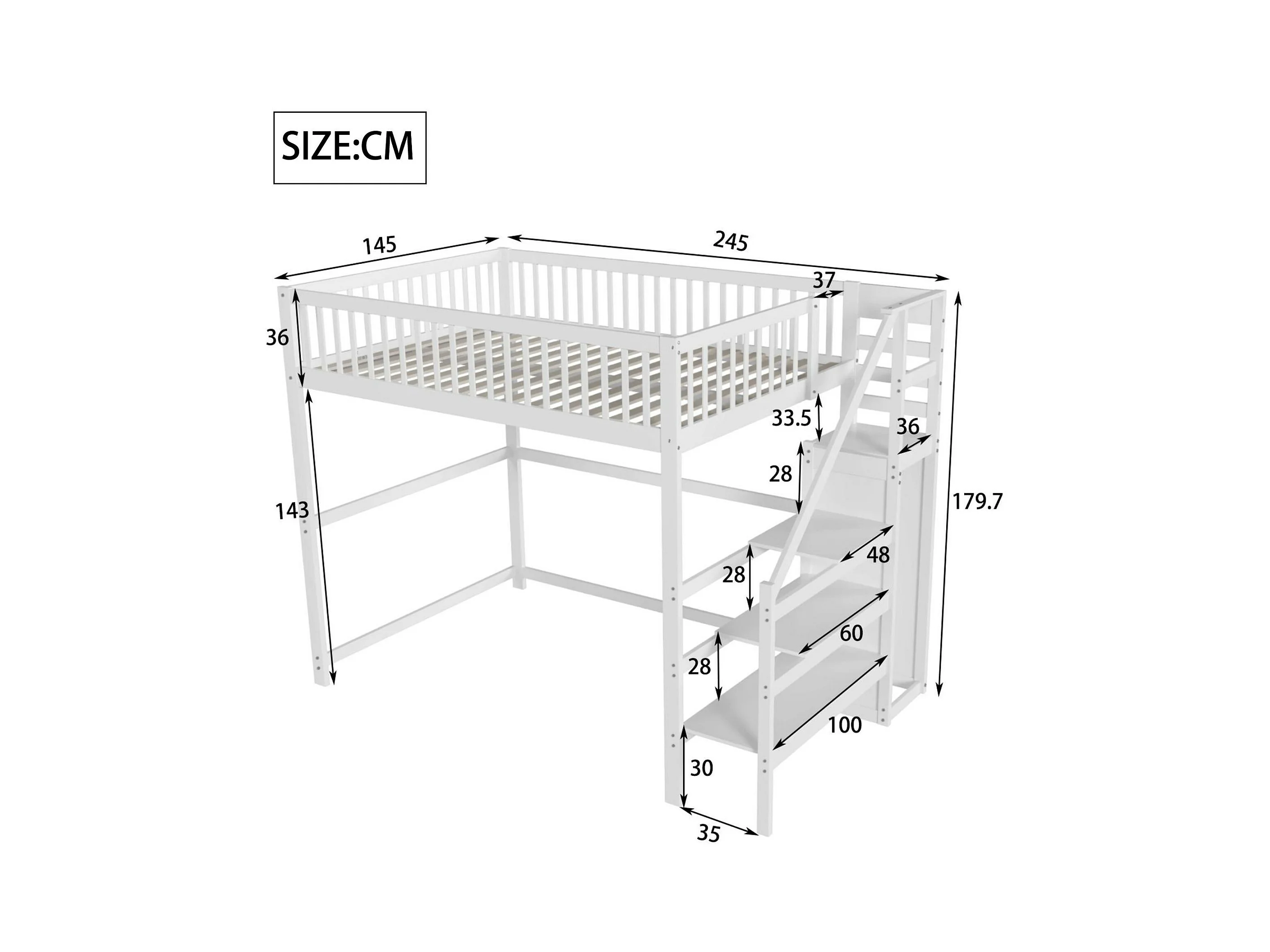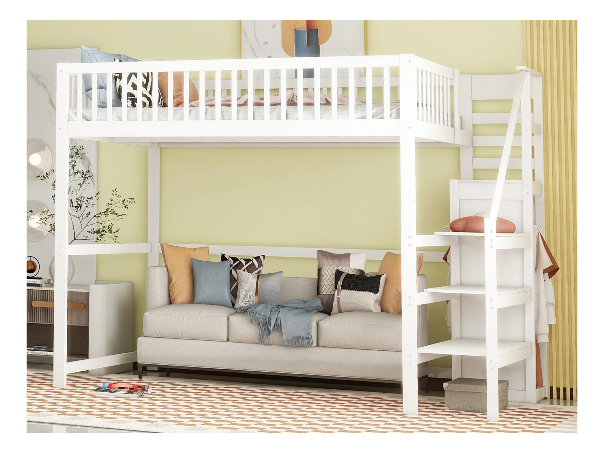 Lit mezzanine 140x200cm en bois - avec une armoire - Blanc