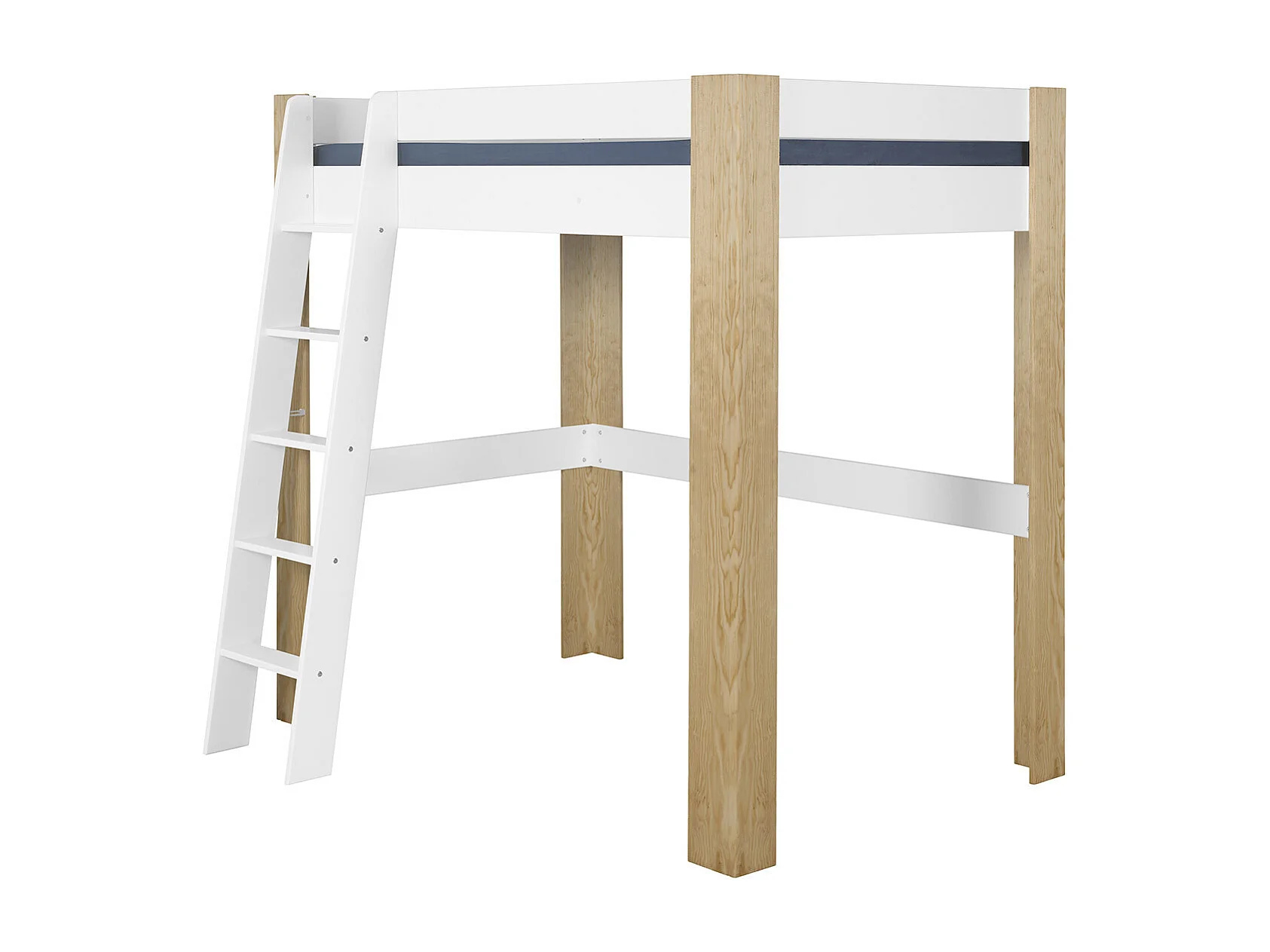 Lit mezzanine 2 places 120x190 cm bois massif blanc et bois LEE