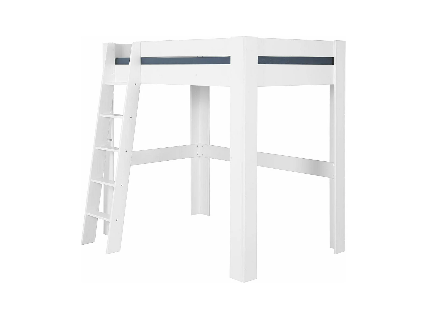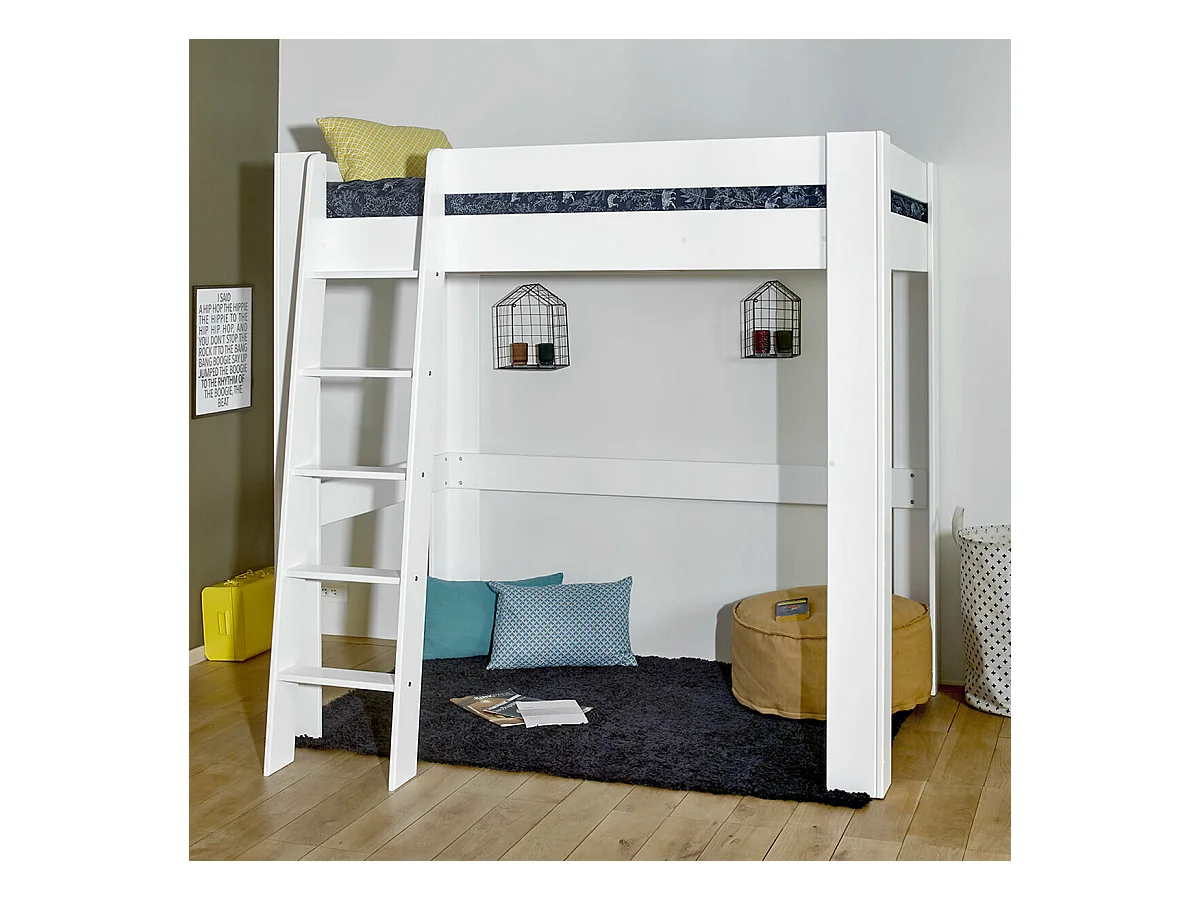 Lit mezzanine 2 places 140x190 cm bois massif blanc LEE