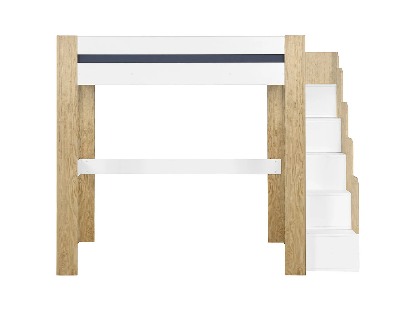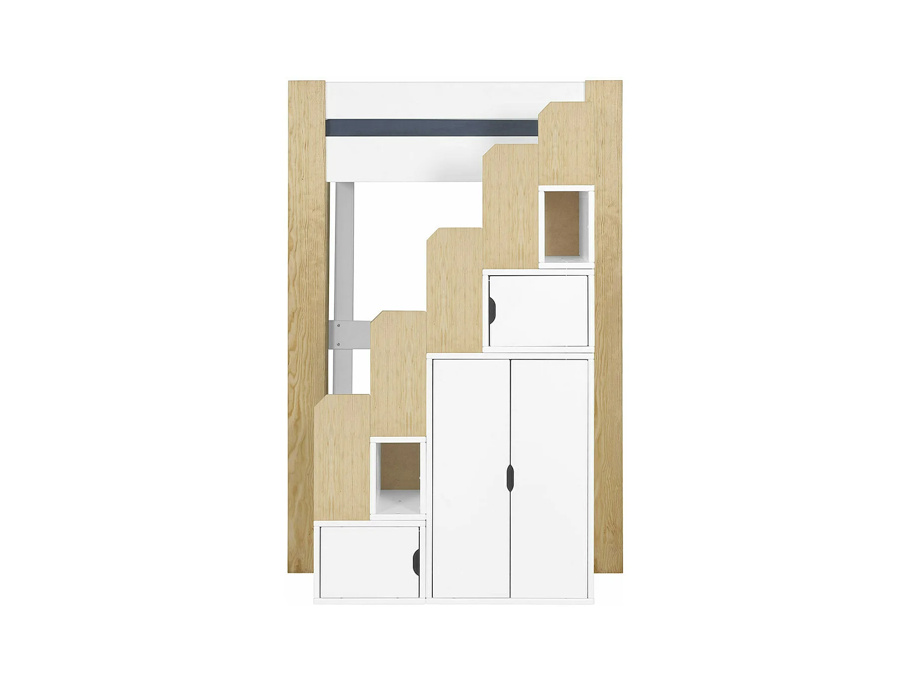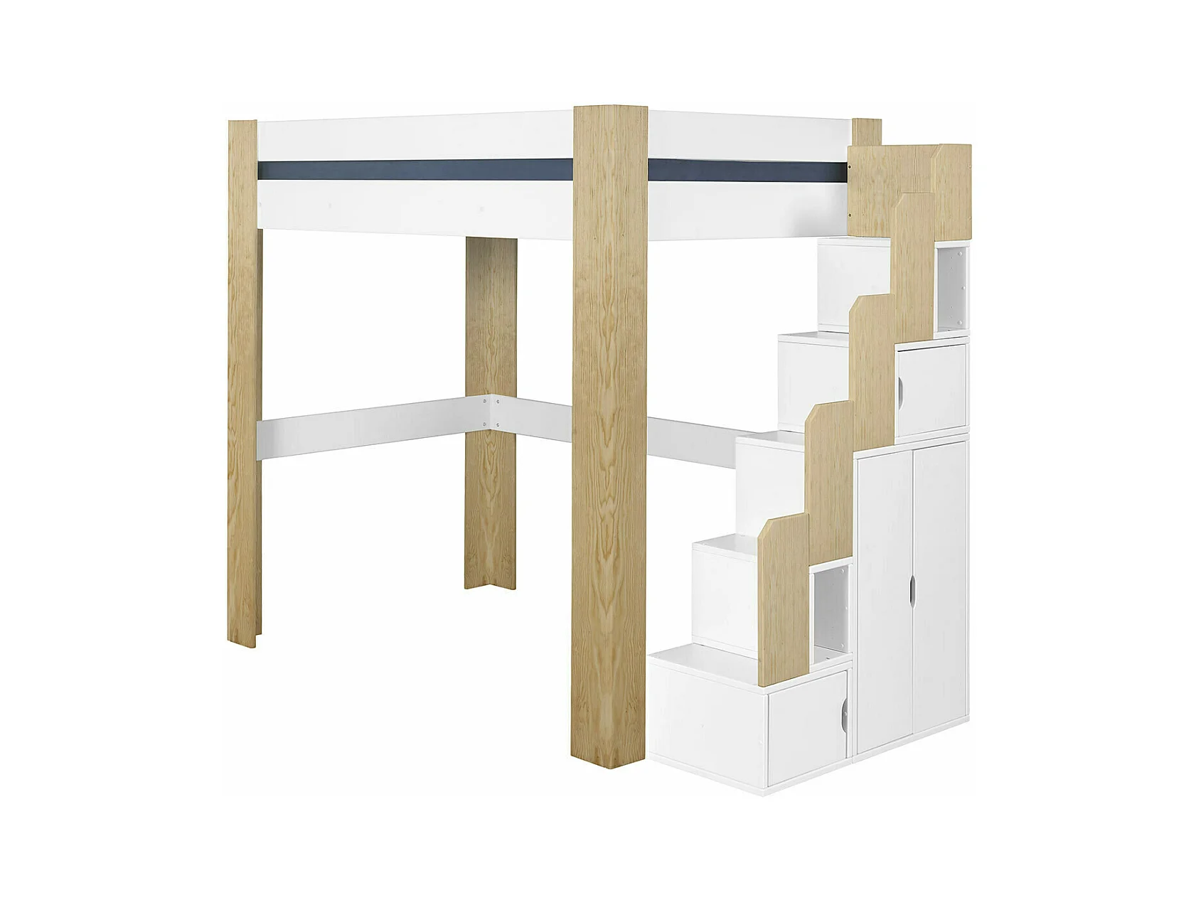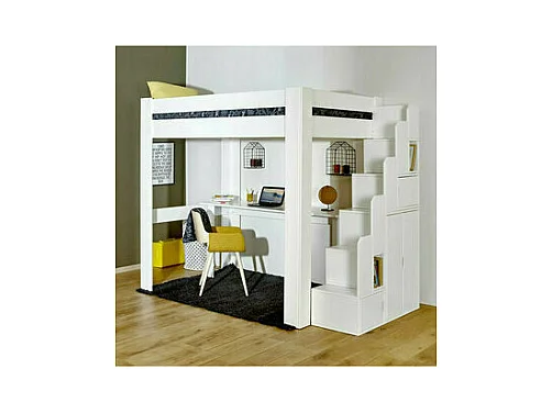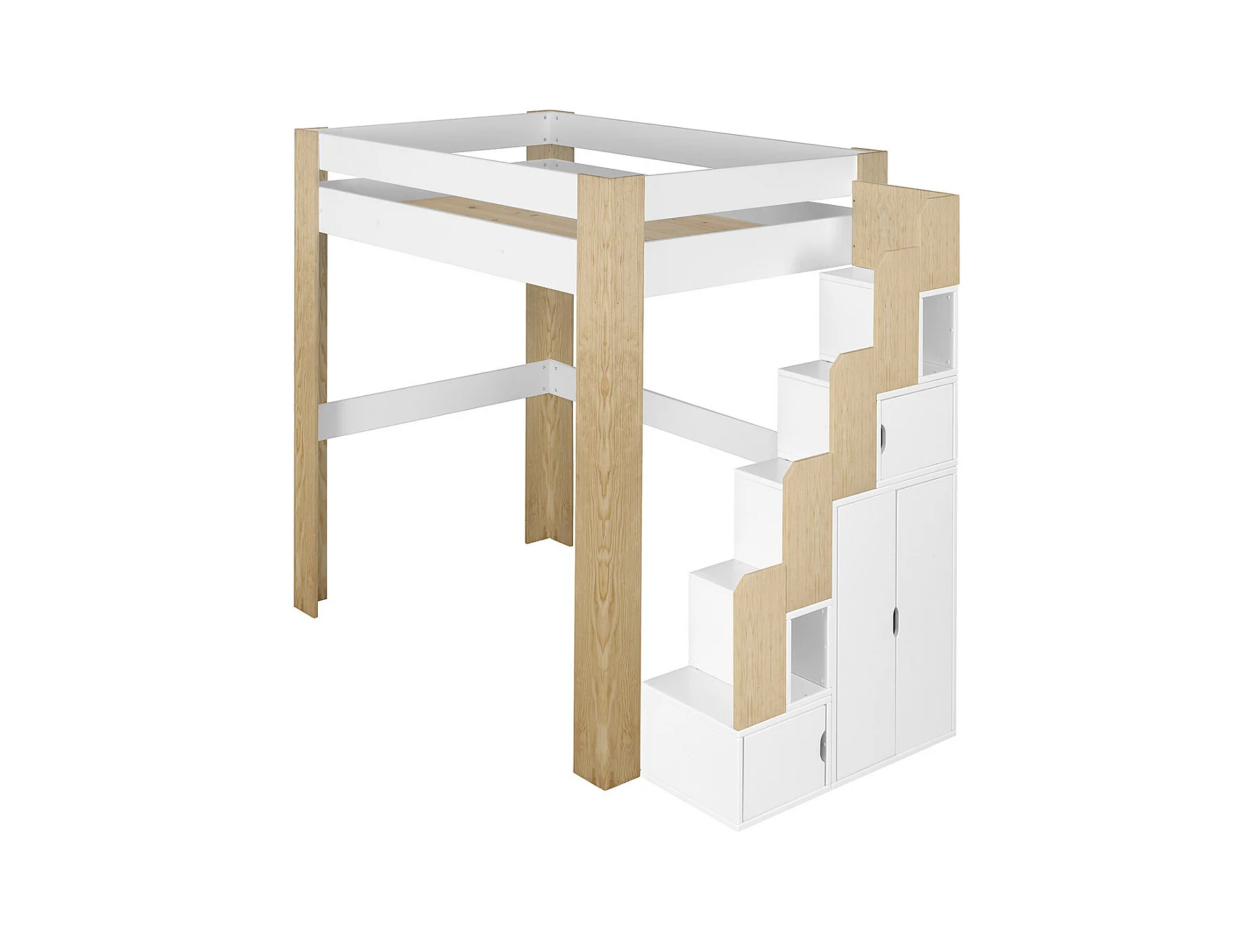 Lit mezzanine 2 places avec bureau 140x190 cm bois massif blanc et bois LEX