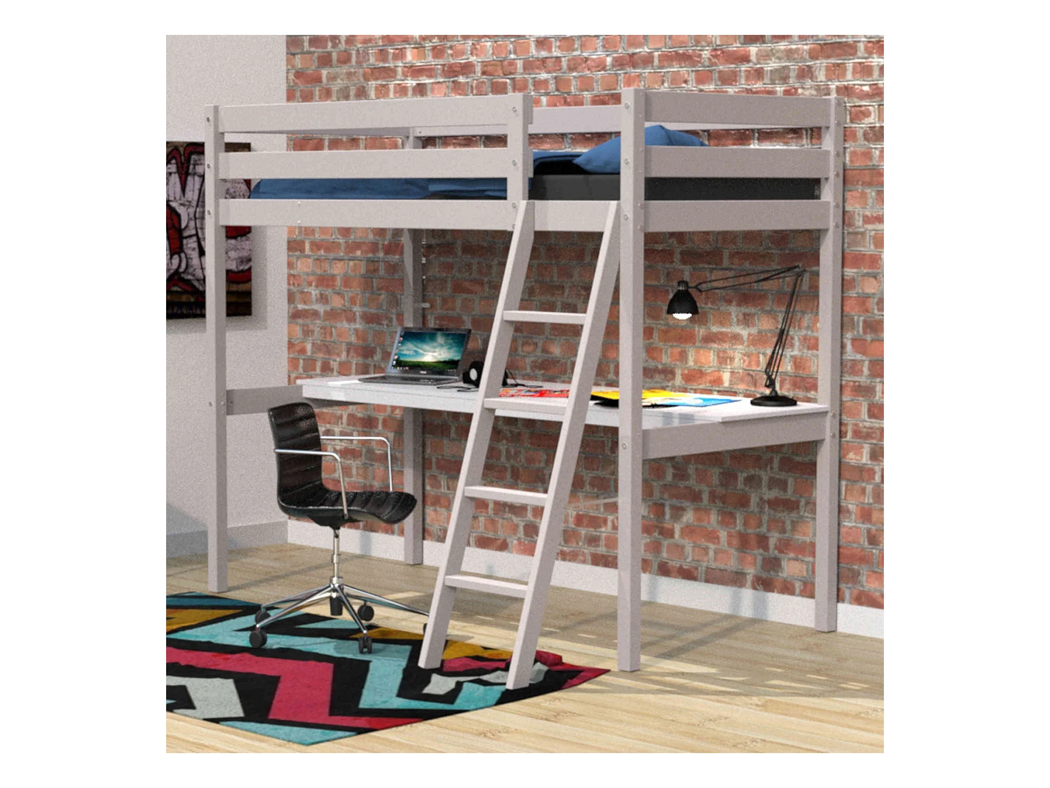 Lit mezzanine avec bureau en bois gris 90x190 - LT14038