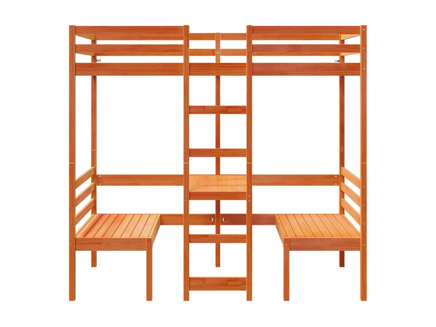 Lit mezzanine avec bureau et chaises brun cire 90x190 cm pin