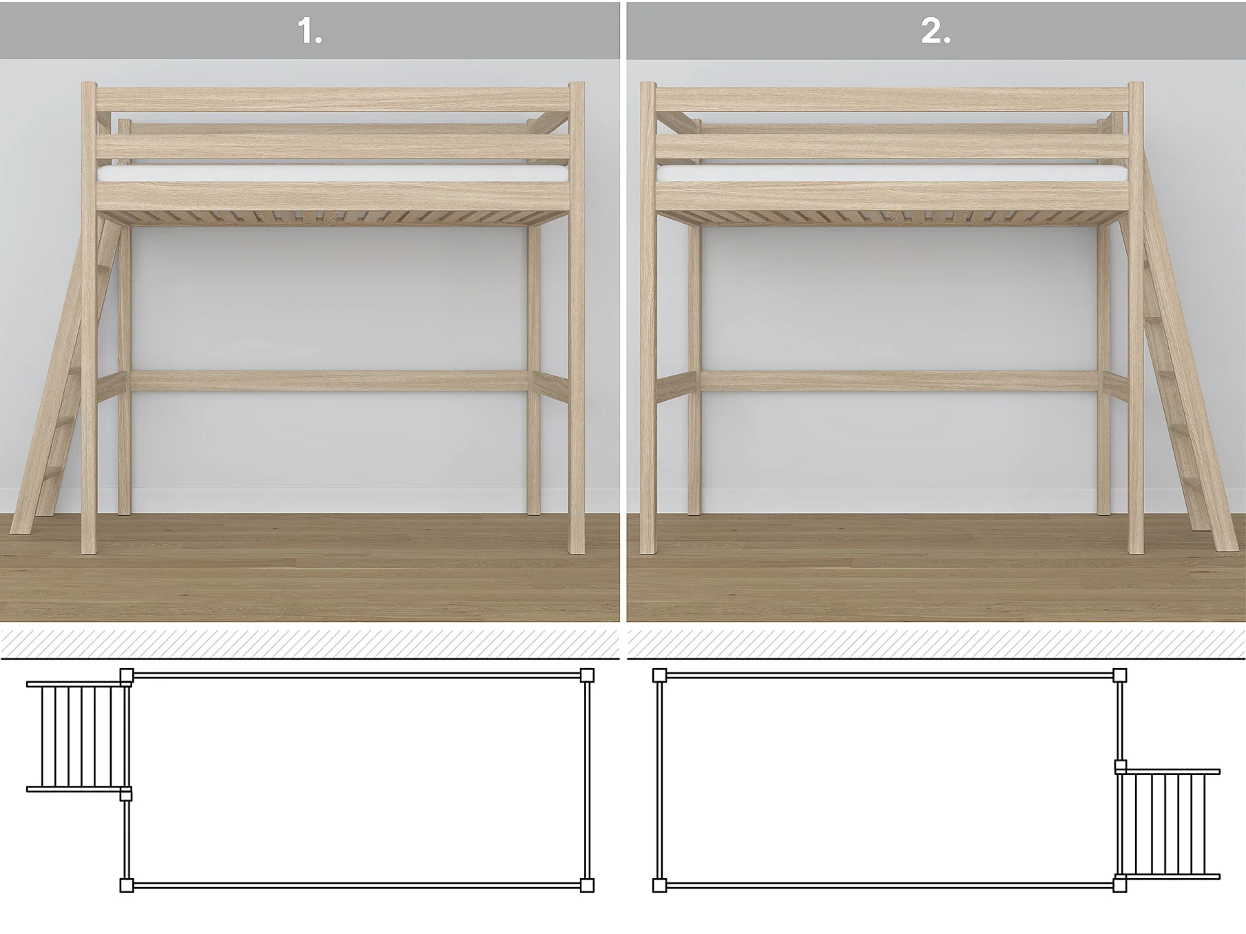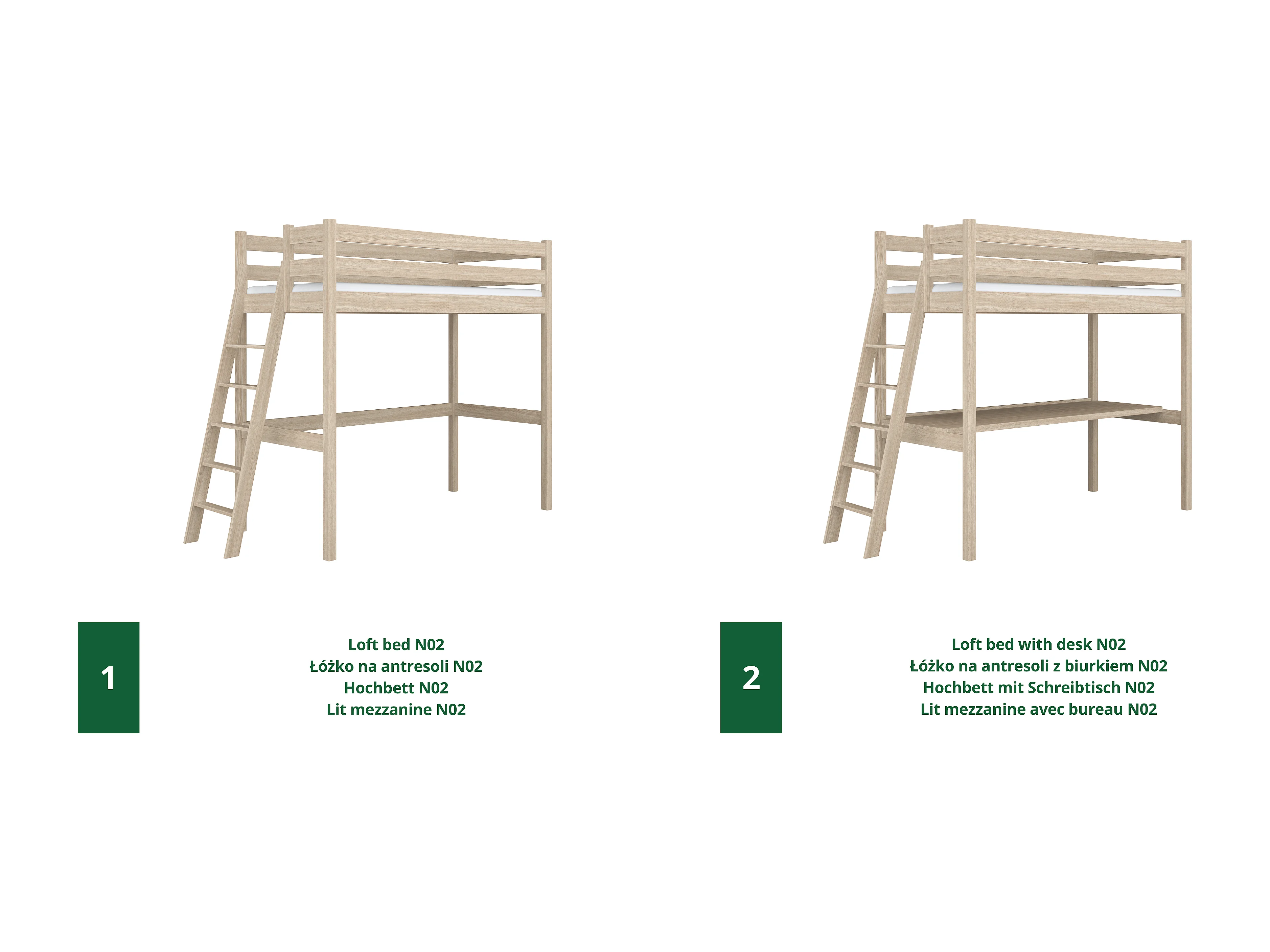 Lit mezzanine en chêne N02 Chêne Blanchi 100x180