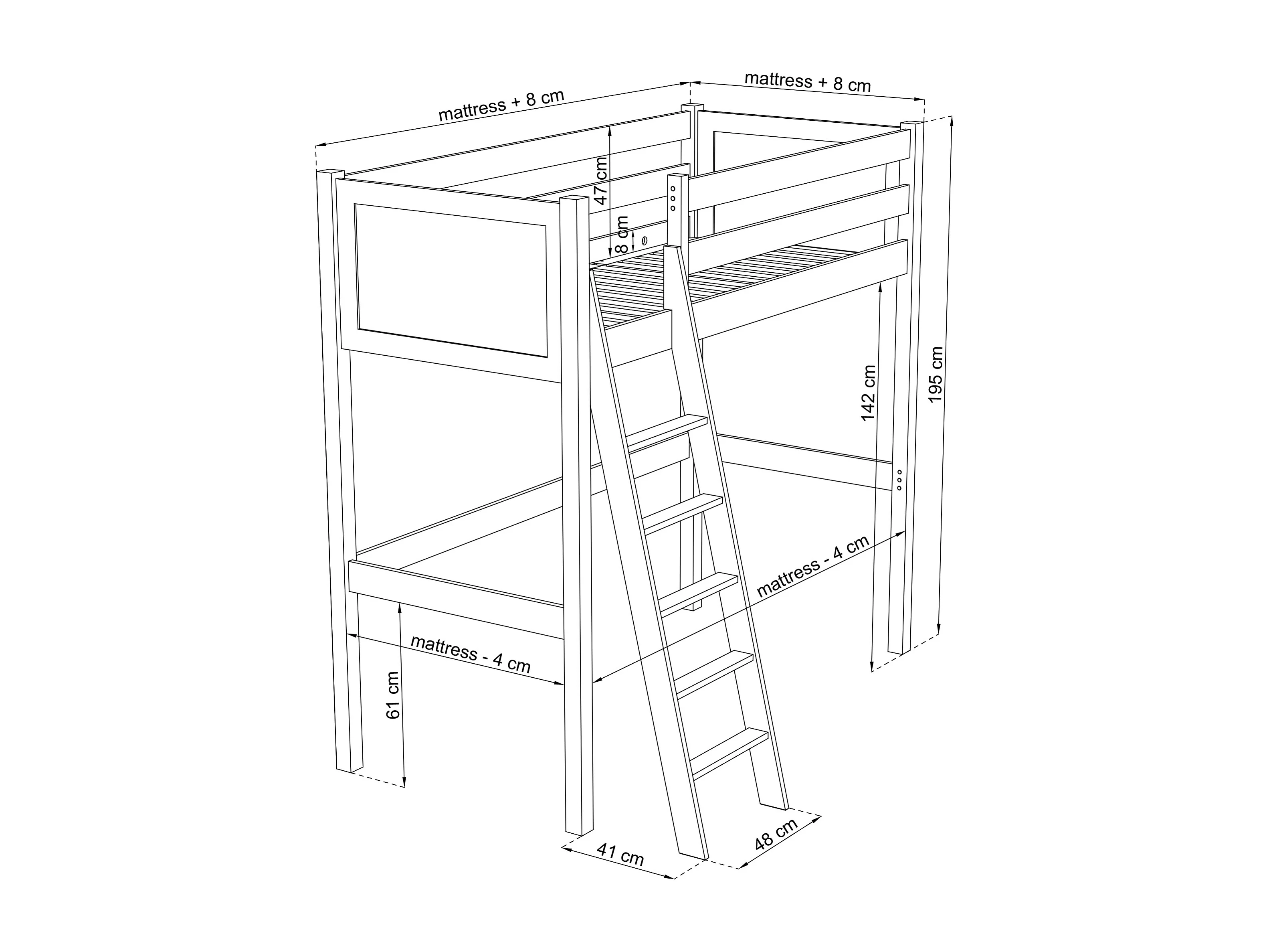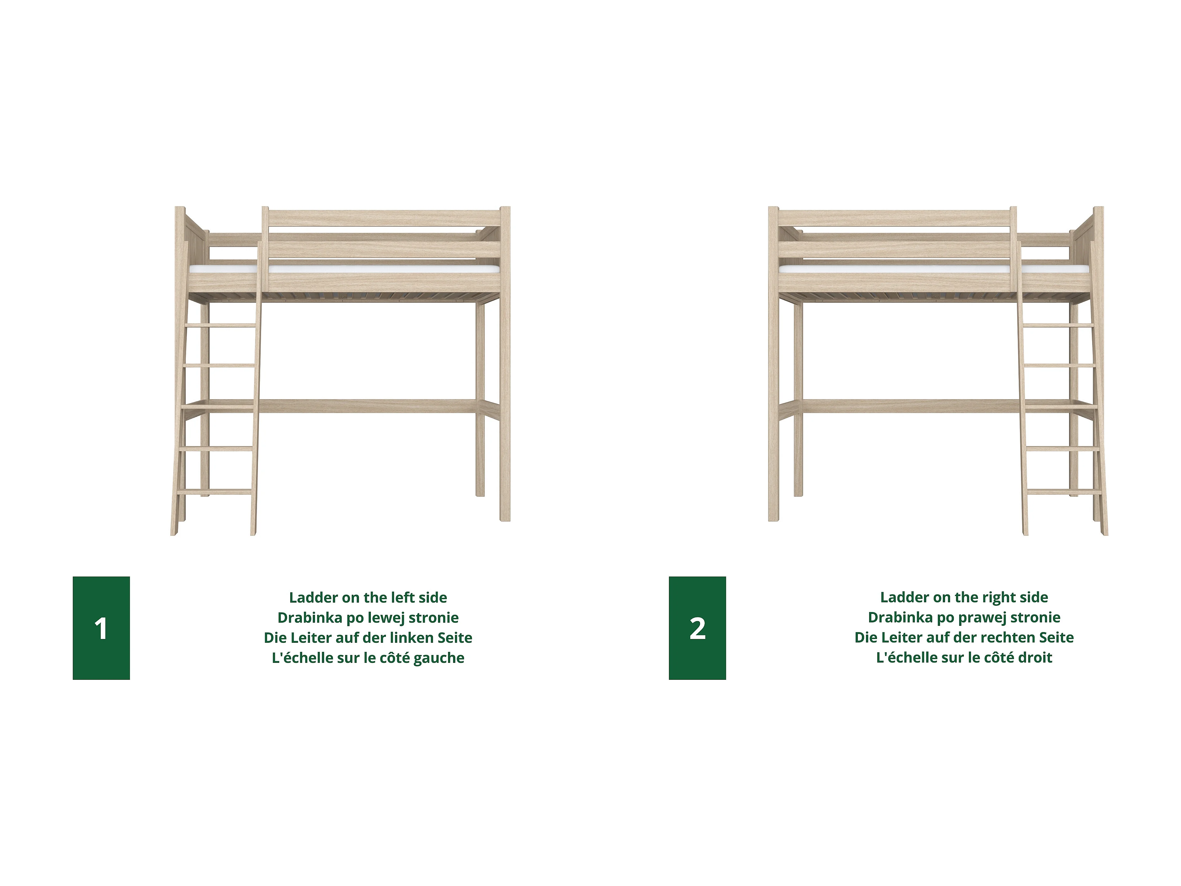 Lit mezzanine en chêne N04 Chêne Blanchi 90x190