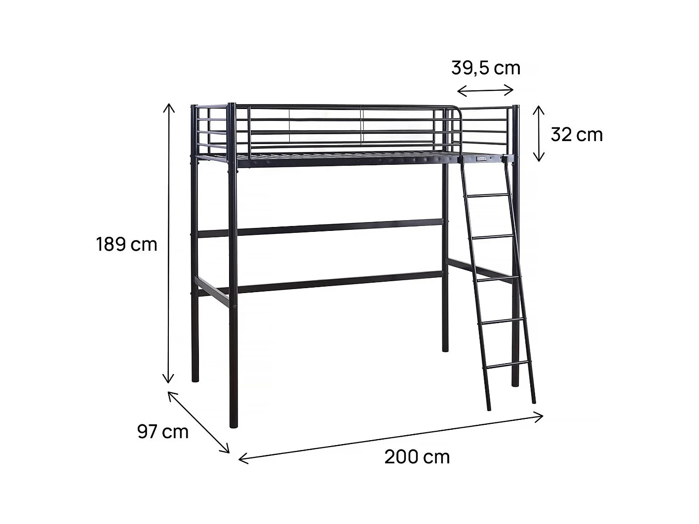 Lit mezzanine en métal "Alora" - 90 x 190 cm - Noir