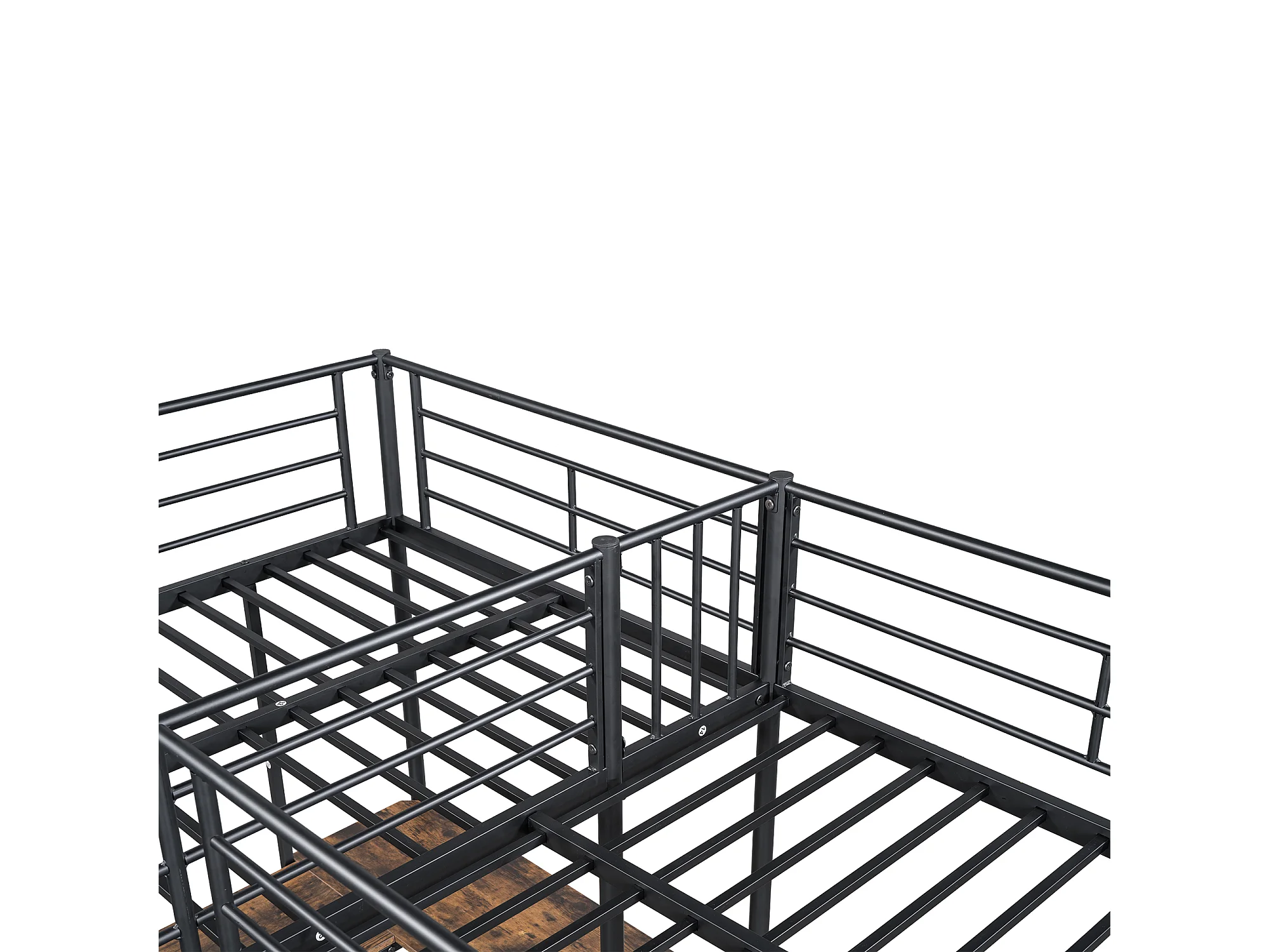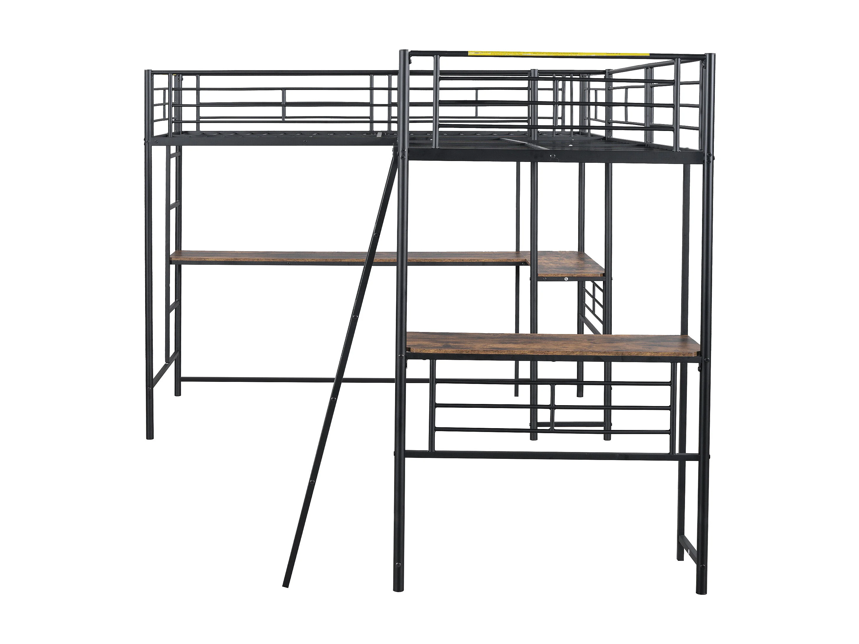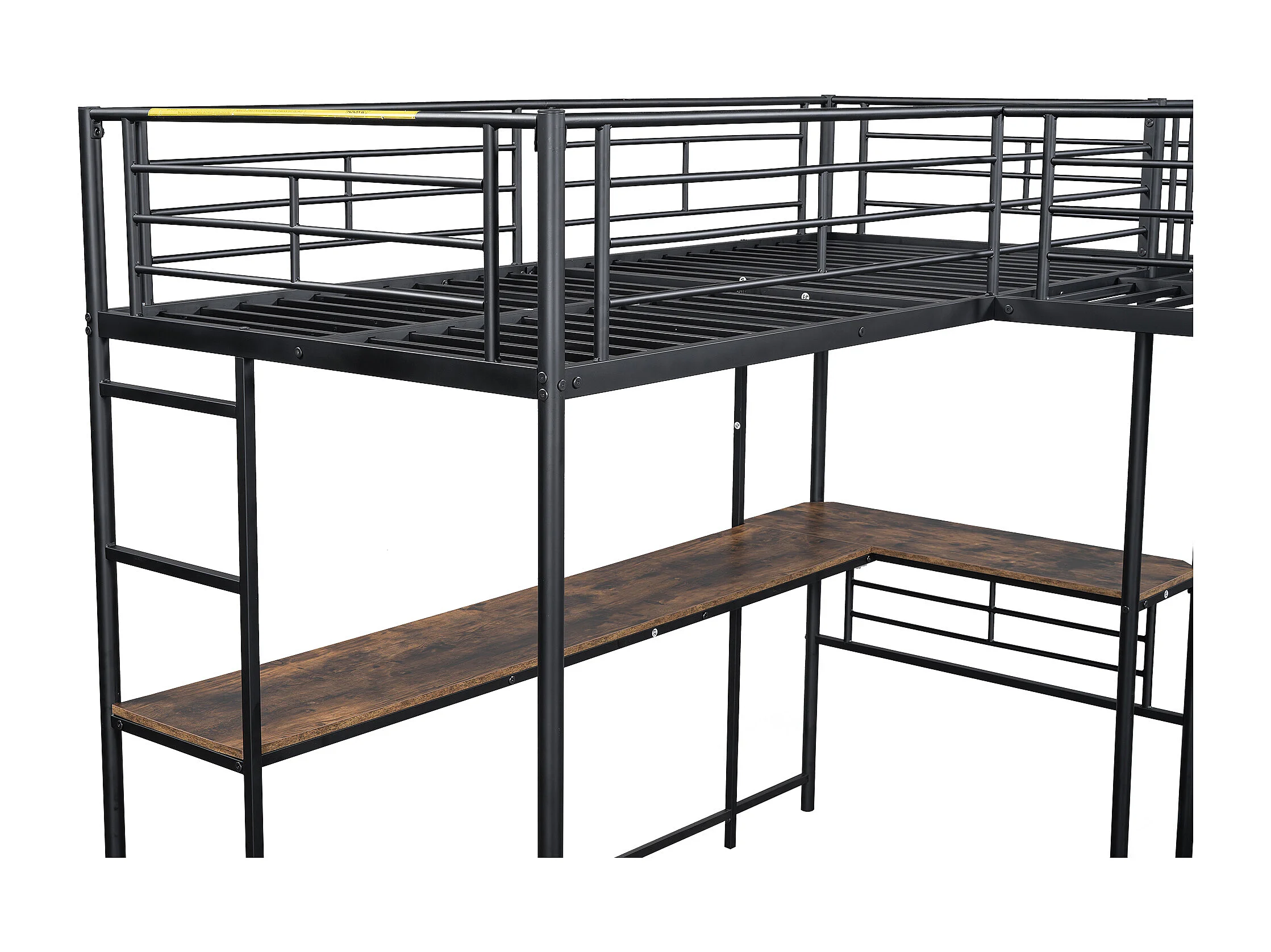 Lit mezzanine 90x200 cm avec sommier - protection anti-chute avec bureau et rangement - métal - noir (sans matelas)
