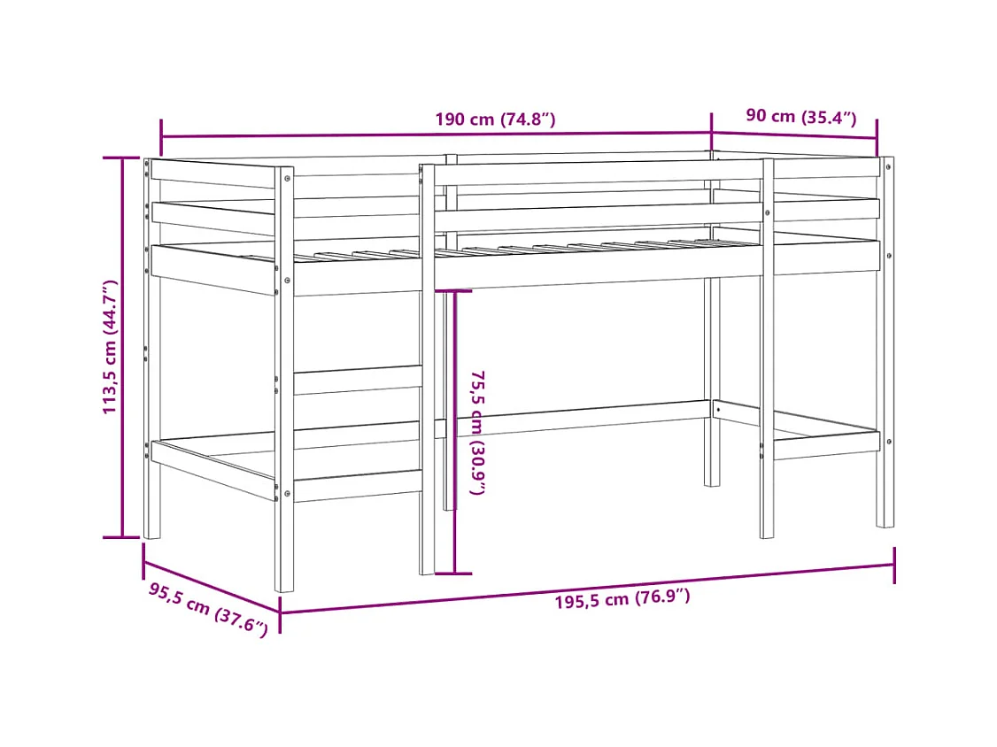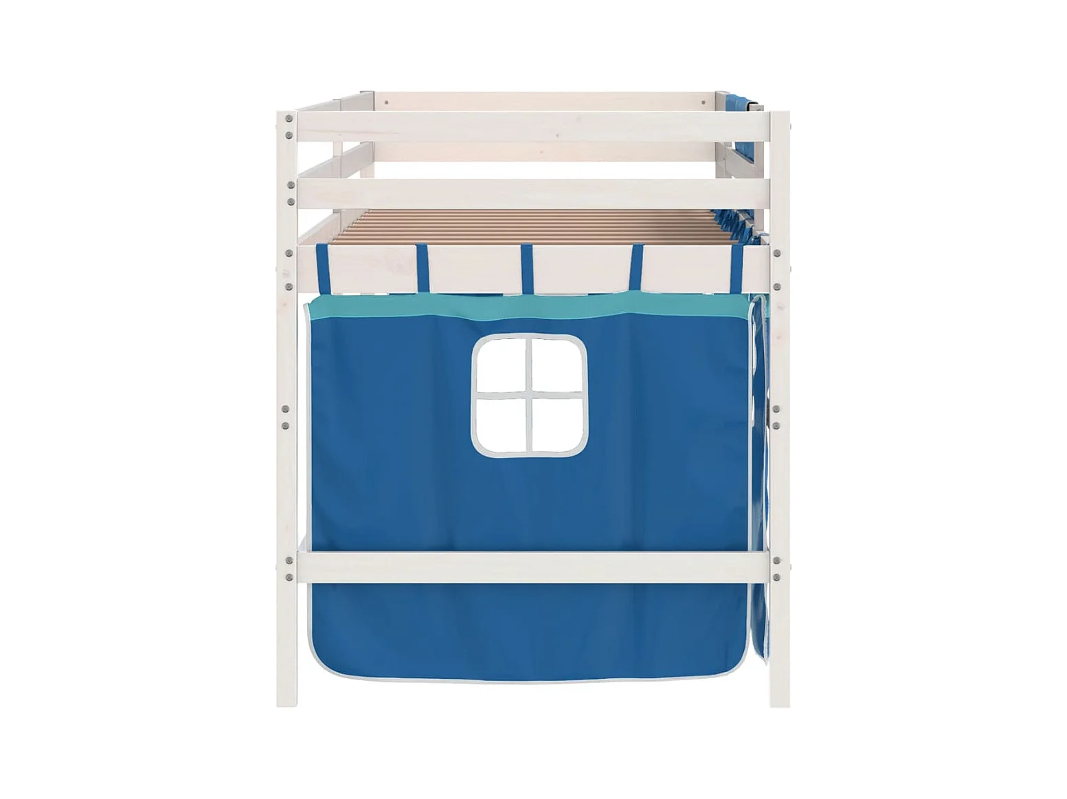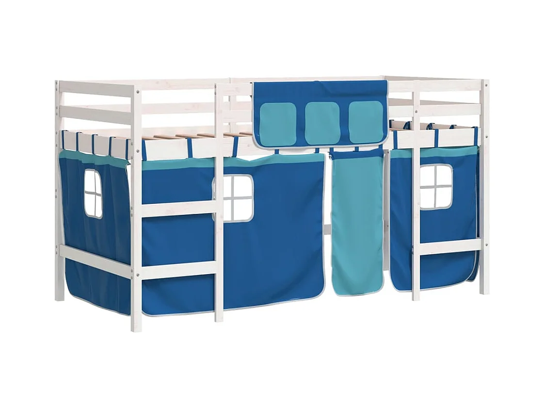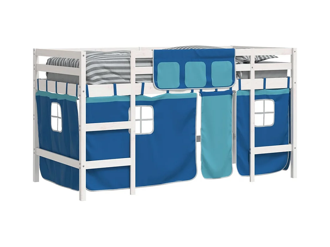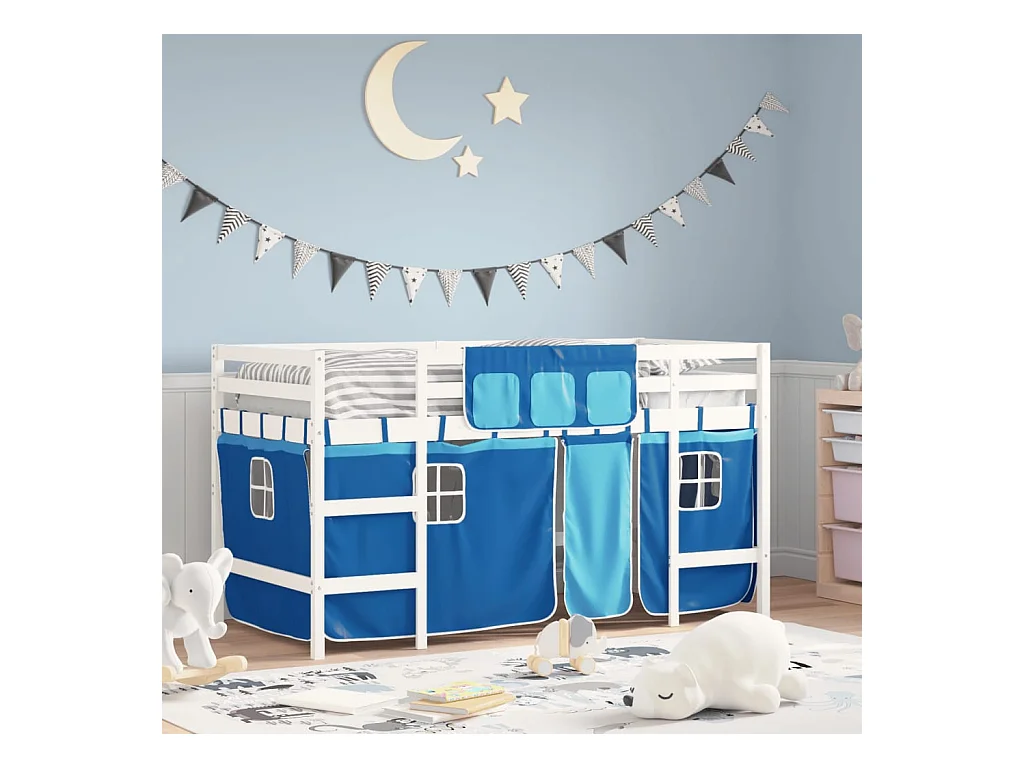 Lit mezzanine enfants avec rideaux sans matelas bleu 90x190 cm