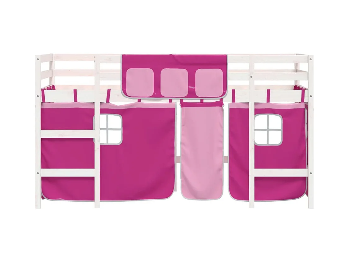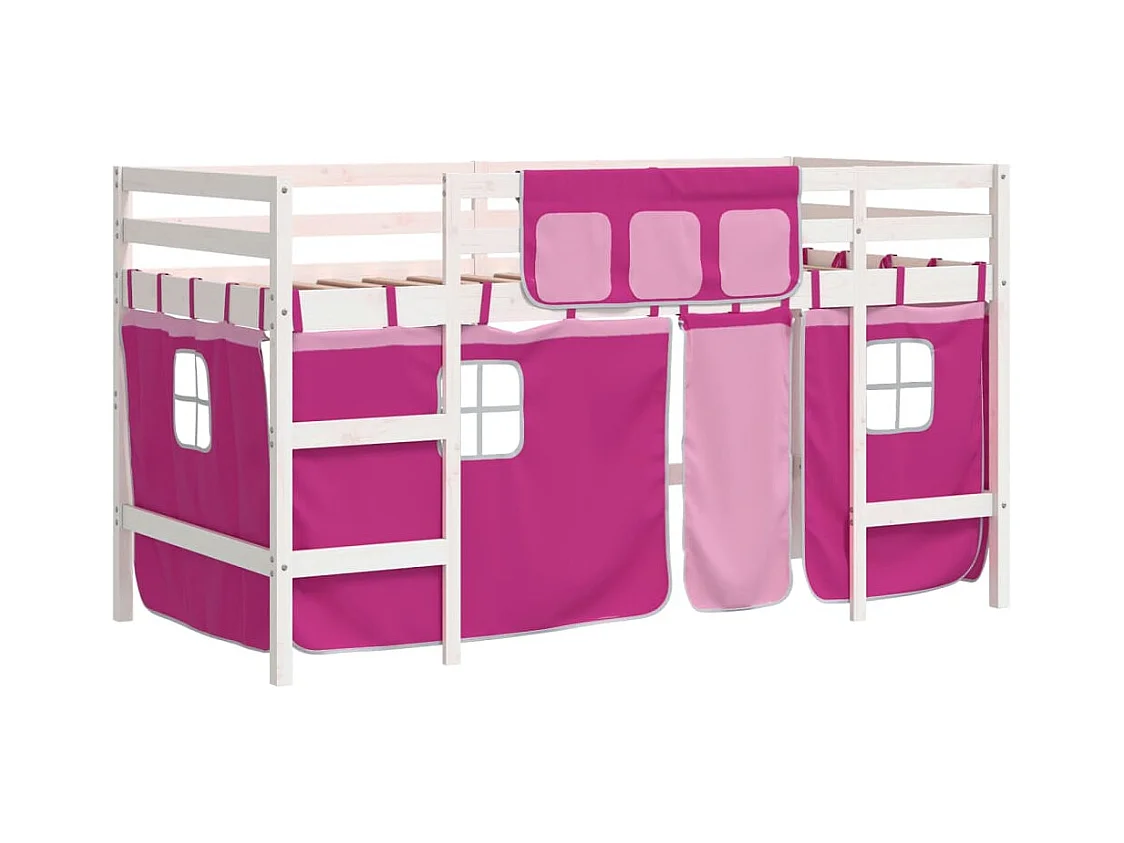 Lit mezzanine enfants avec rideaux sans matelas rose 80x200cm