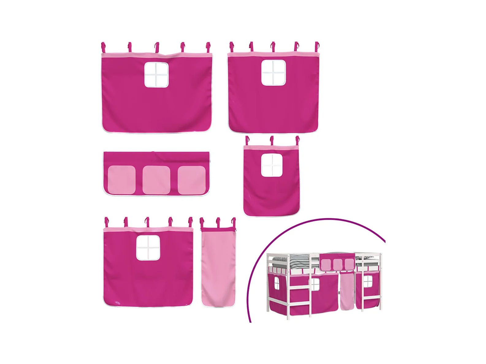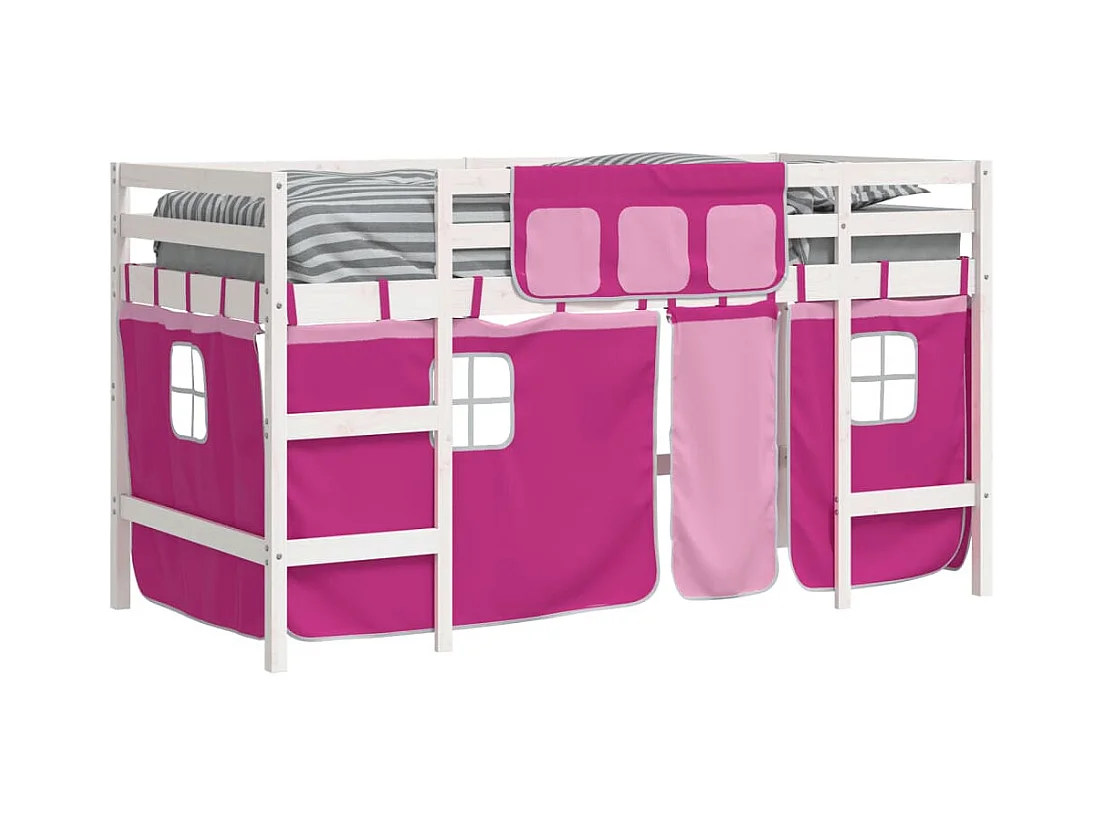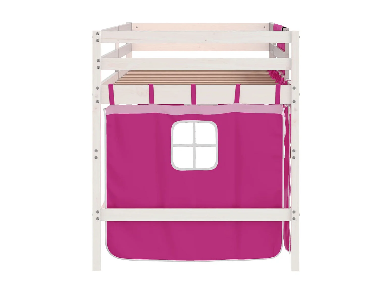 Lit mezzanine enfants avec rideaux sans matelas rose 90x190 cm