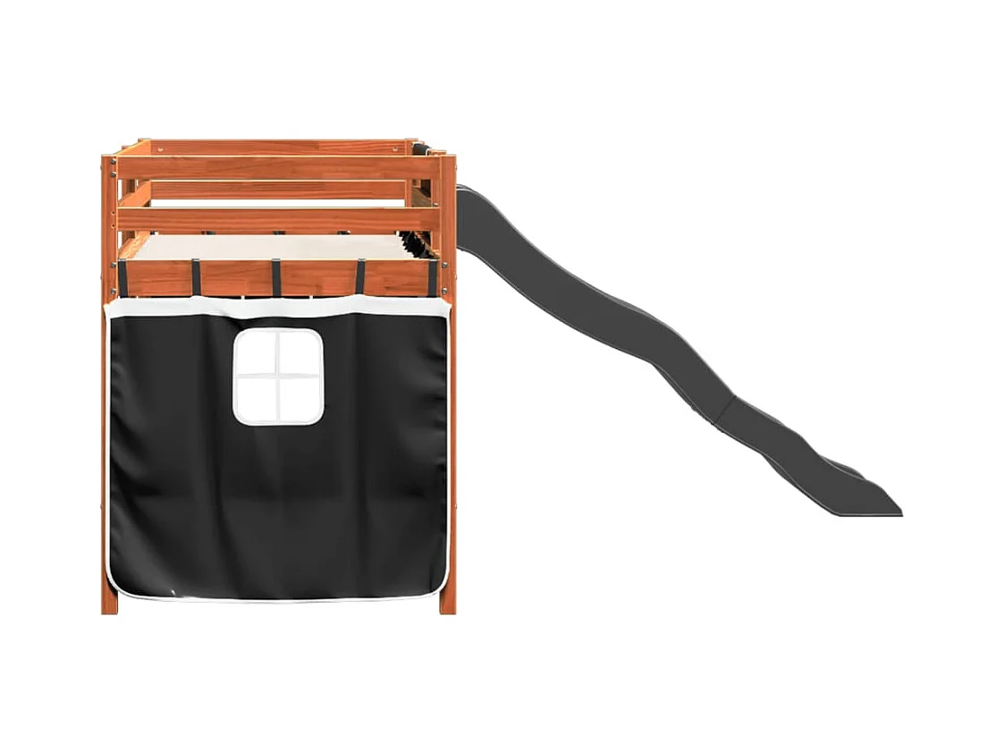 Lit mezzanine enfants et rideaux blanc/noir 80x200cm pin massif