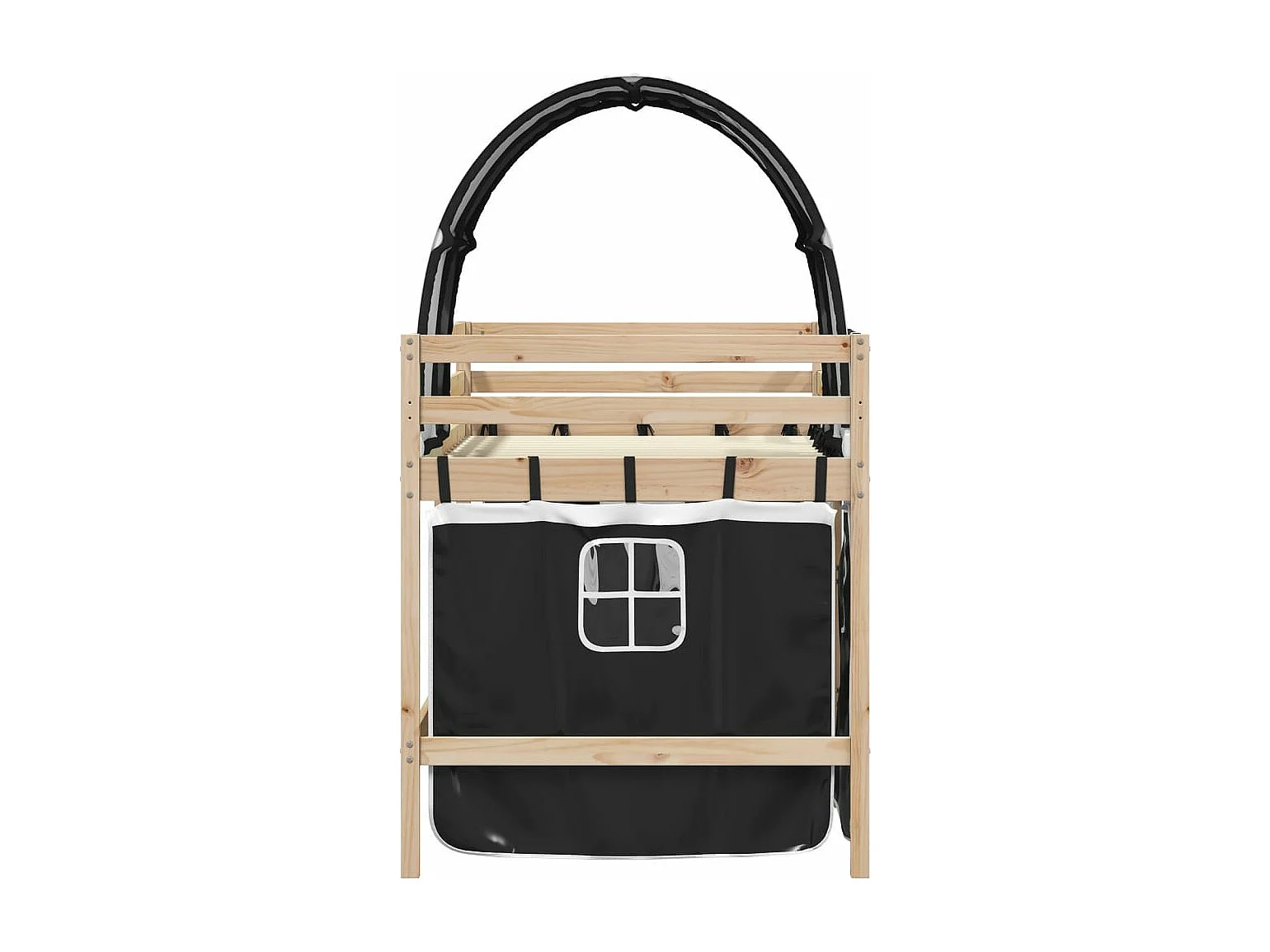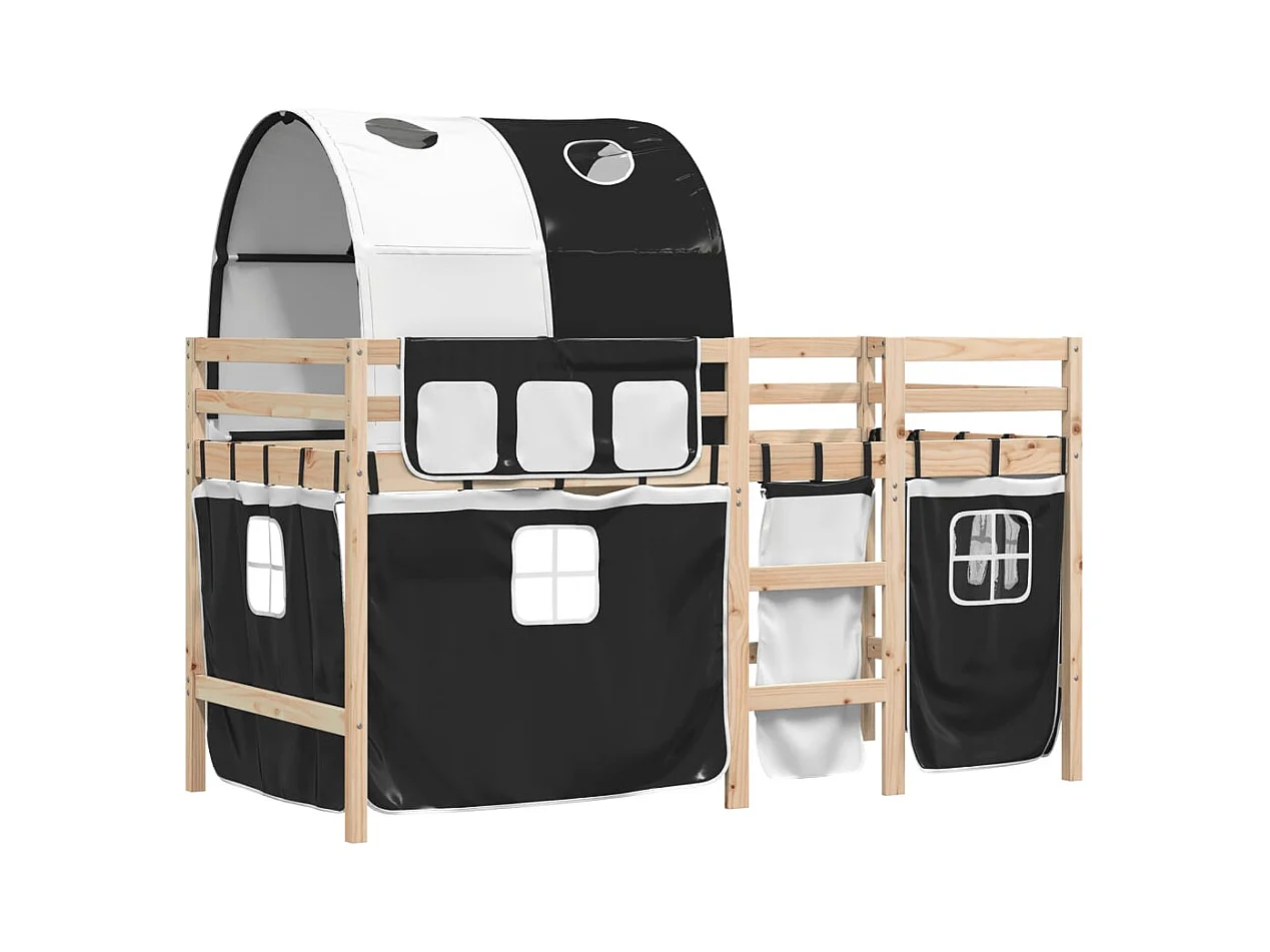 Lit mezzanine enfants et tunnel blanc-noir 90x200 pin massif