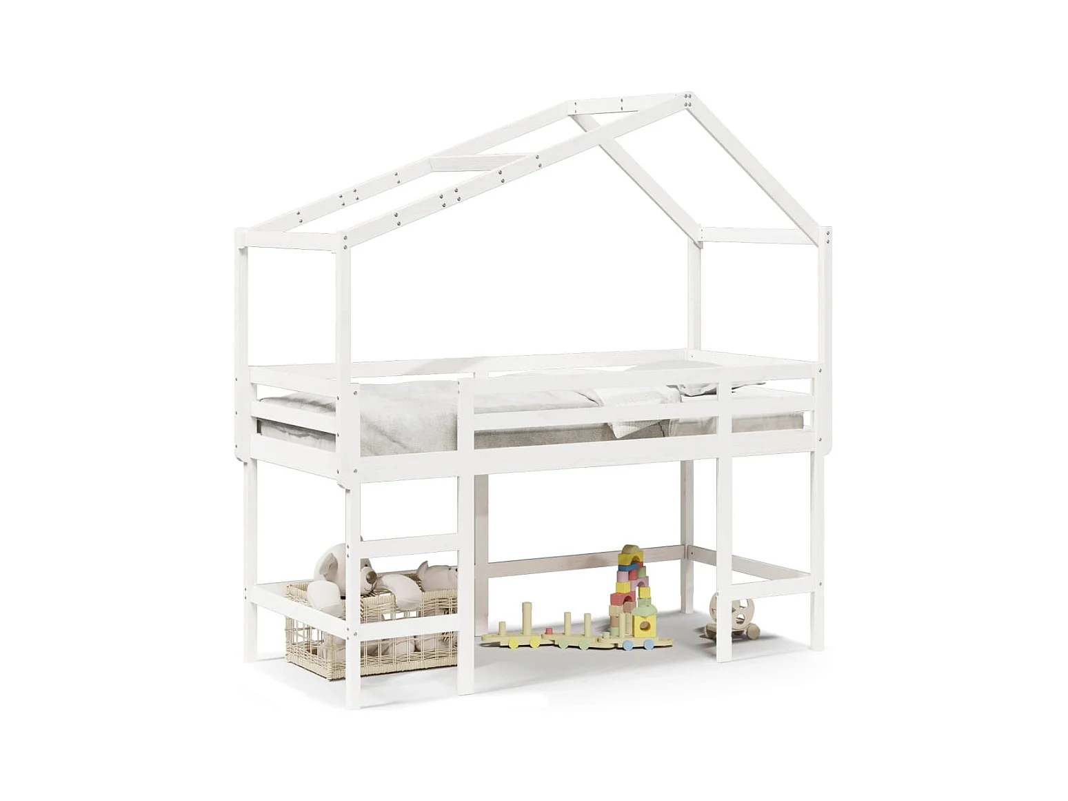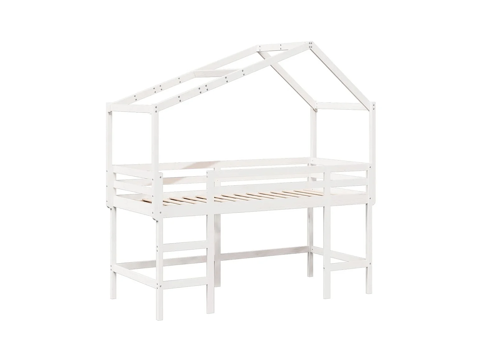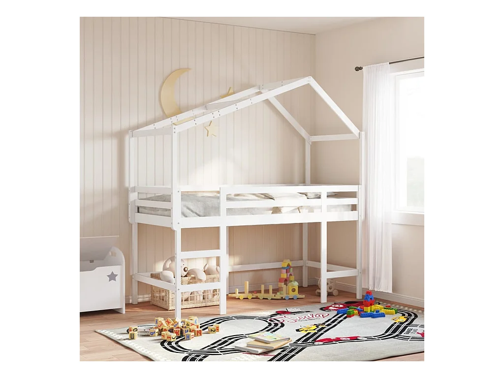 Lit mezzanine et échelle et toit blanc 90x190cm bois pin massif FR61543