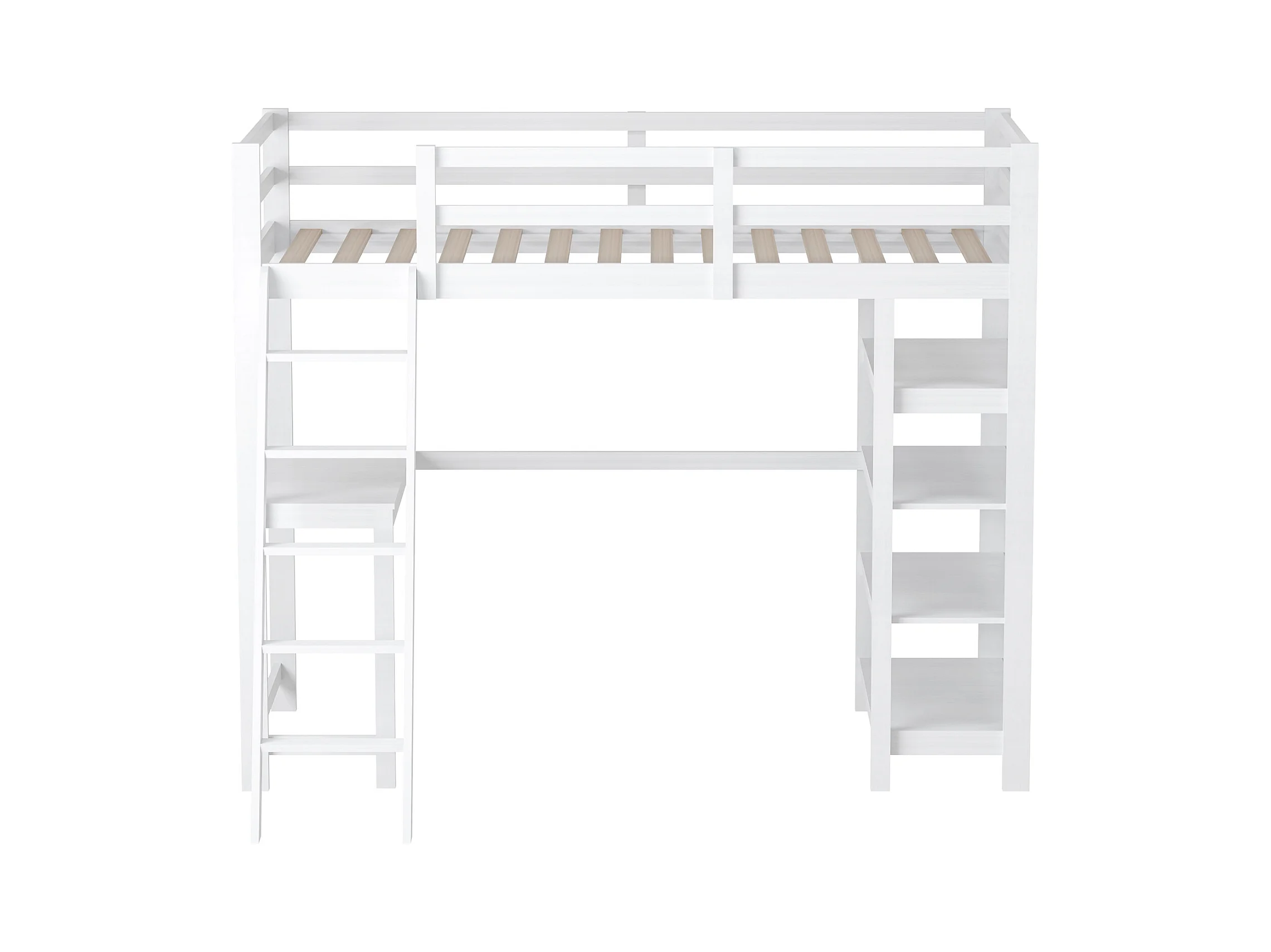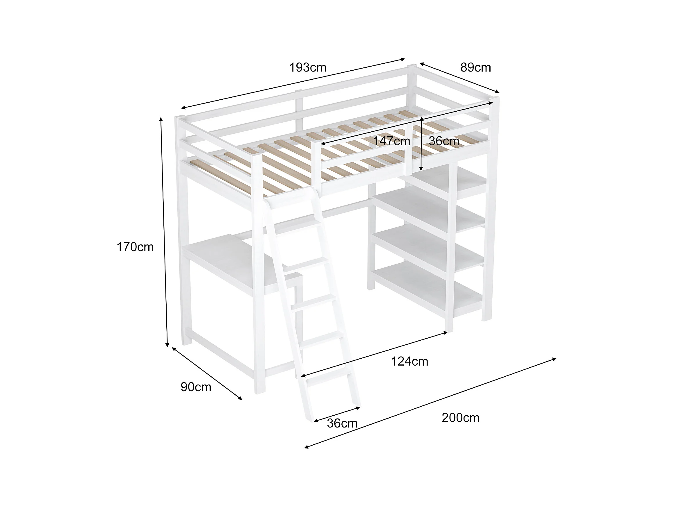 Lit Mezzanine pour Enfant, 90 x 200 cm, avec Compartiments de Rangement et Bureau sous Le lit, Blanc, étagère de Rangement à Quatre Couches, Grande capacité