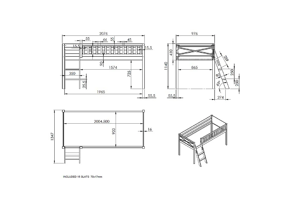 Lit Enfant Tente "Scott Space Shuttle" 90x200cm Blanc