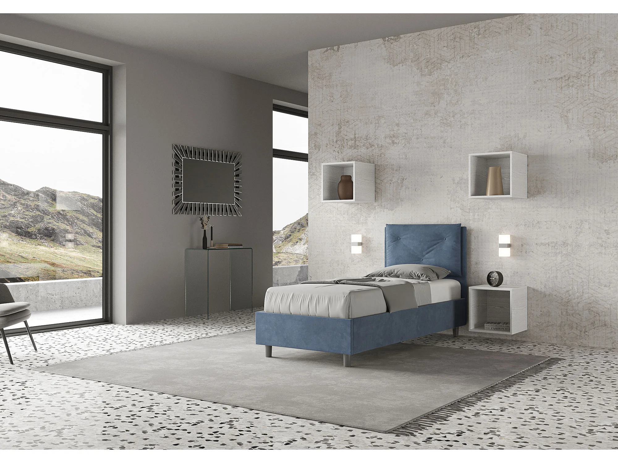 Lit microfibre bleu Appia avec sommier capitonné 80x200