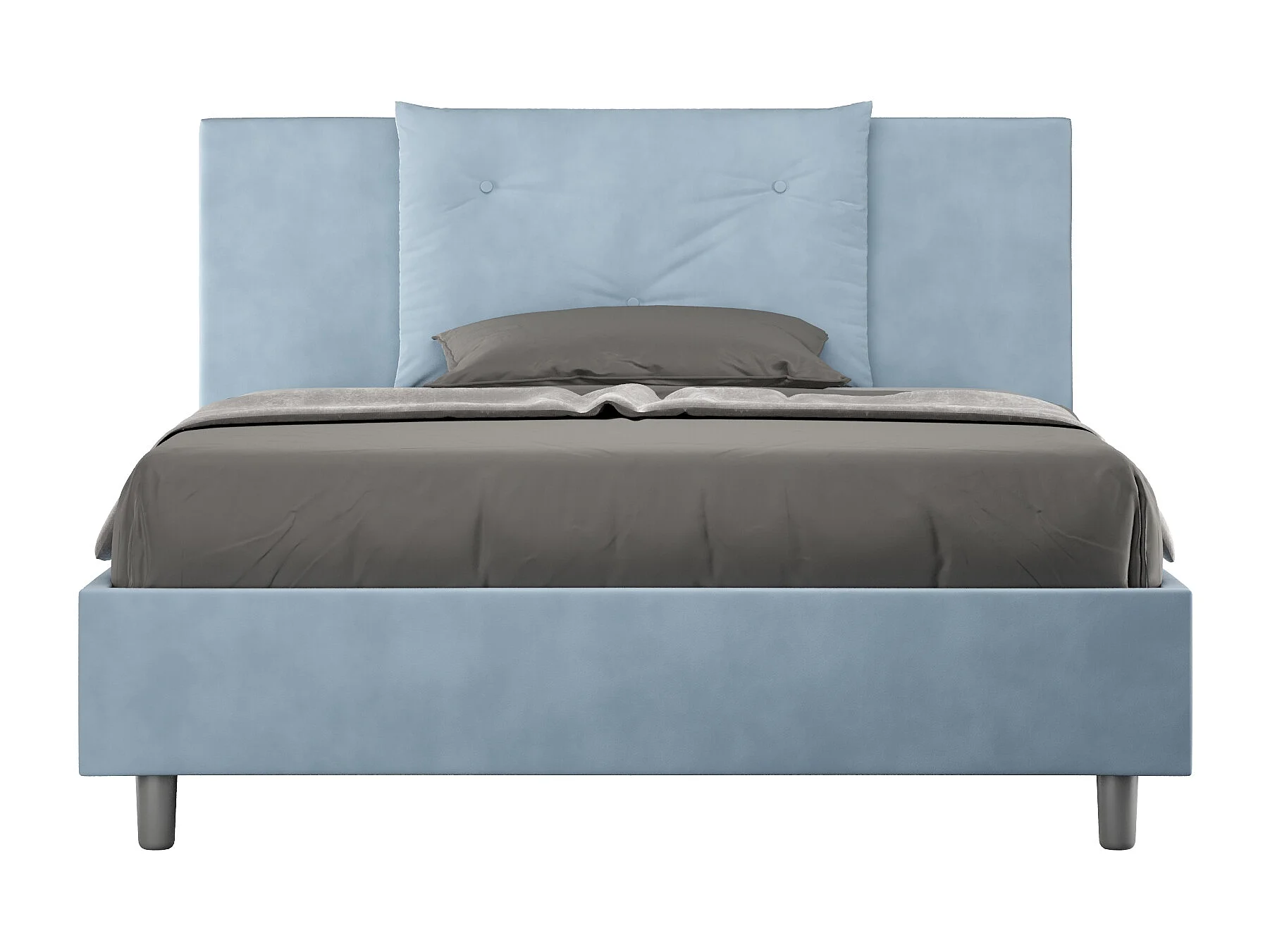 Lit double avec sommier rembourré 140x210 microfibre bleu clair Appia