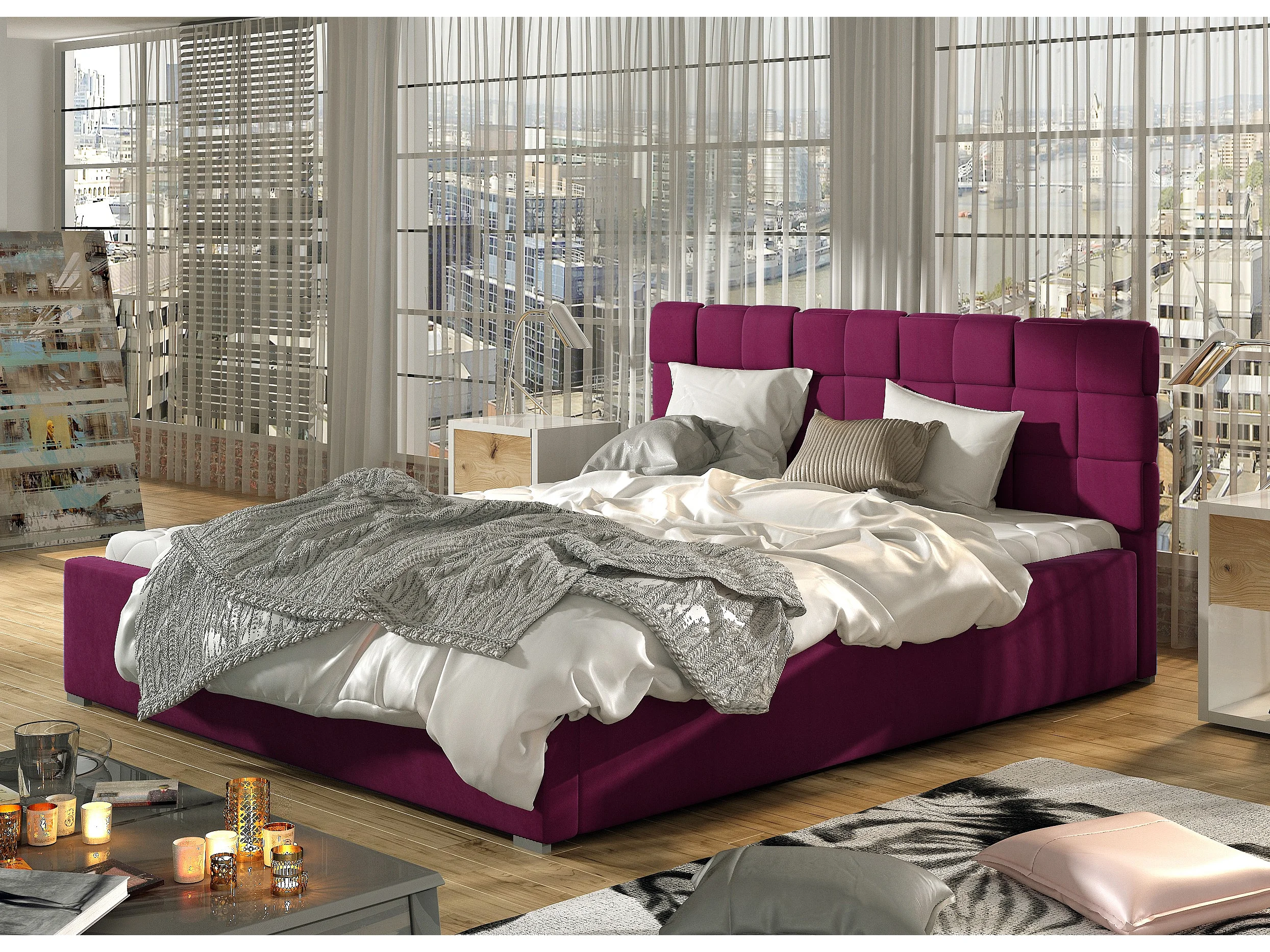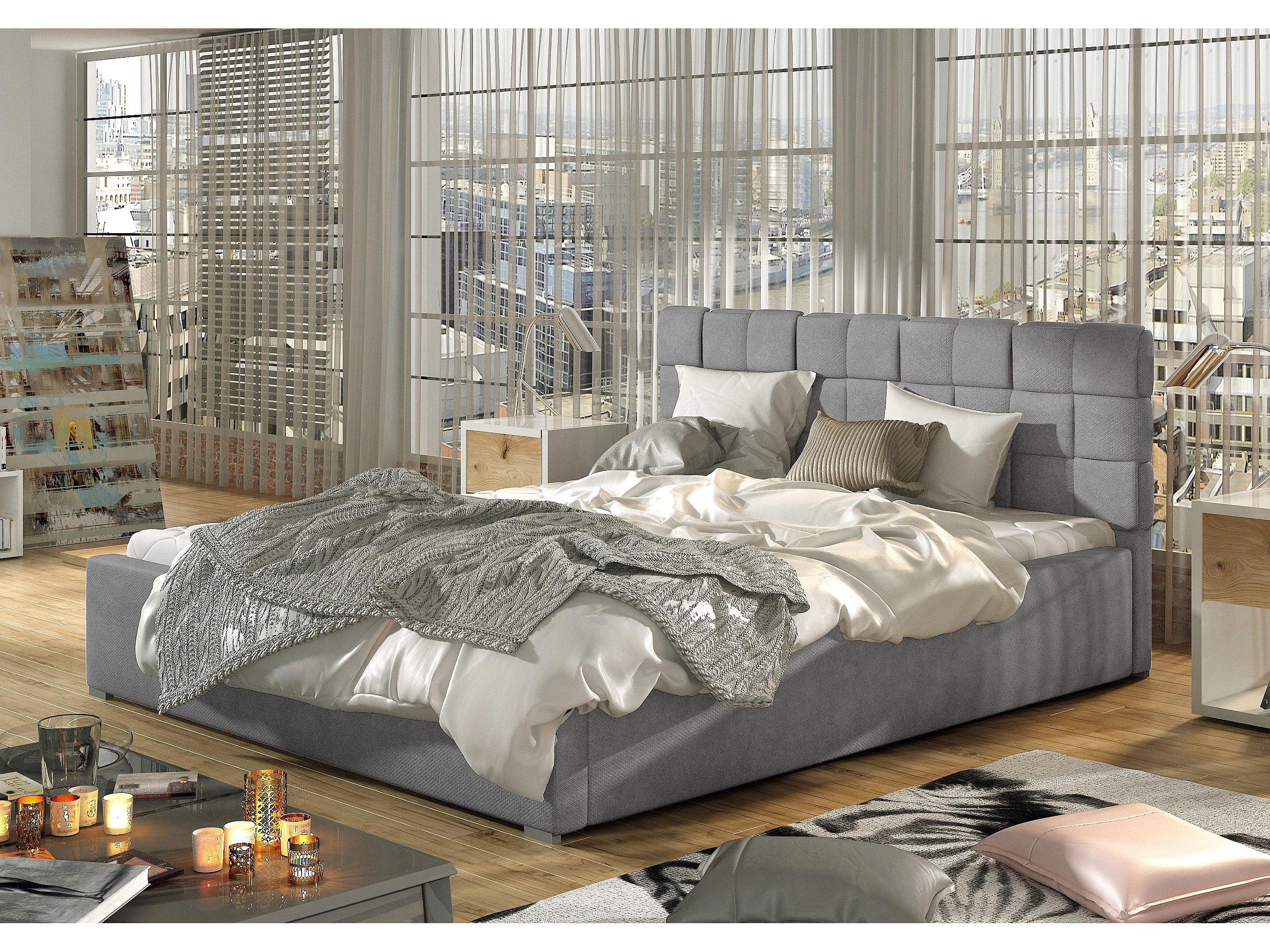 Lit moderne 200x200 capitonné velours gris Kandy