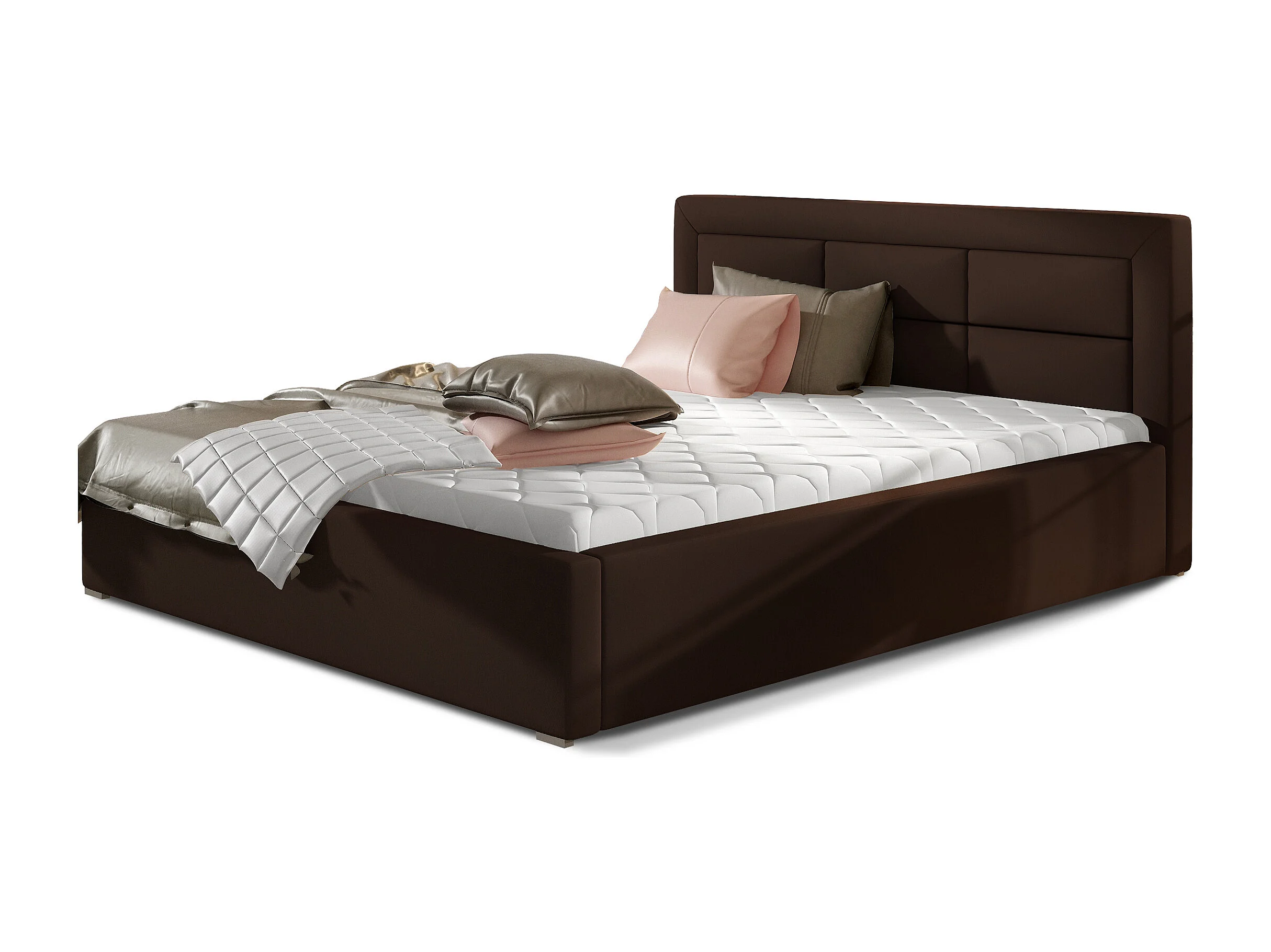 Lit moderne simili cuir capitonné Rizaro-Couleur Marron-180x200-Version coffre de rangement