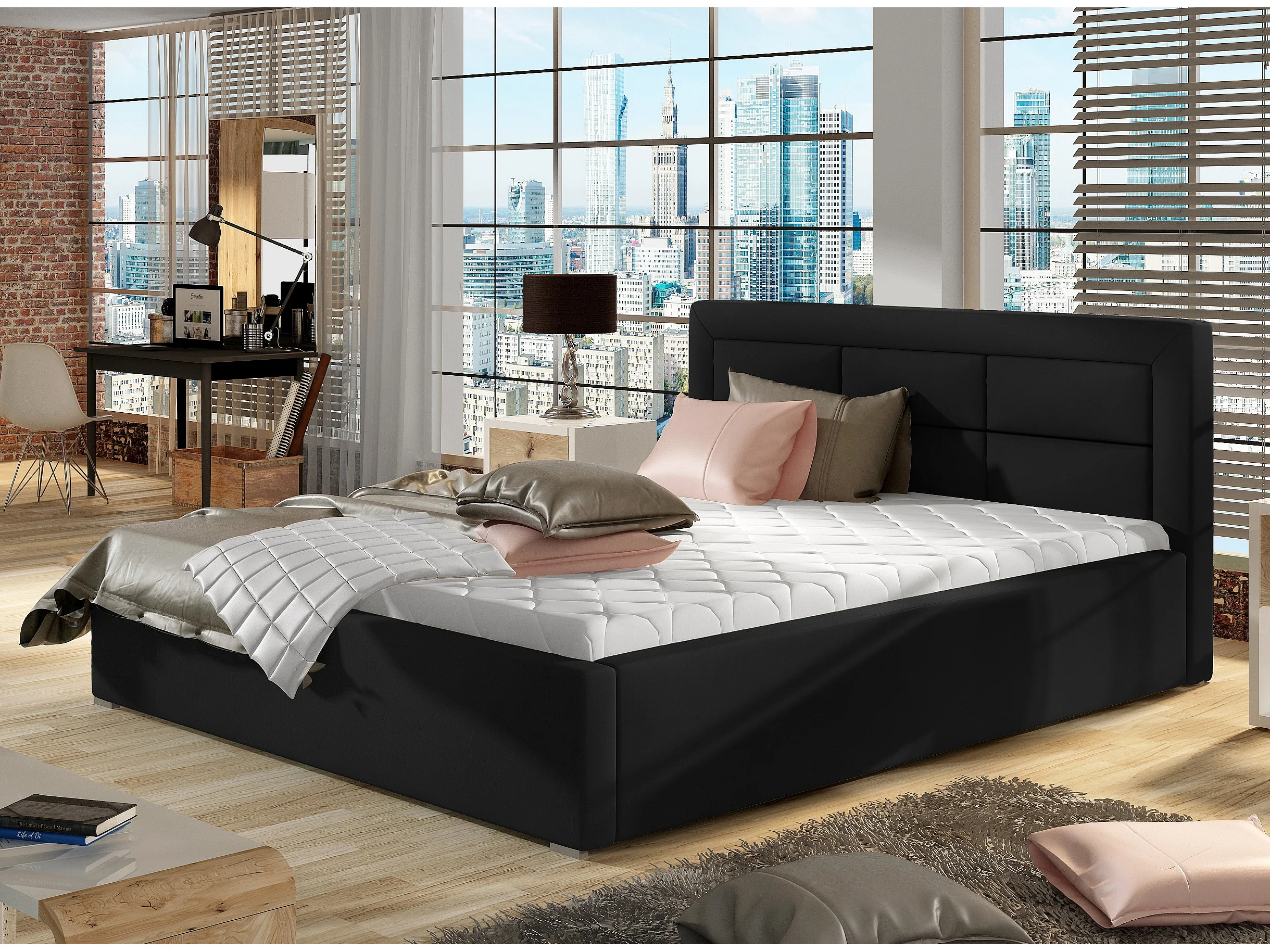 Lit moderne simili cuir capitonné Rizaro-Couleur Noir-160x200-Version coffre de rangement