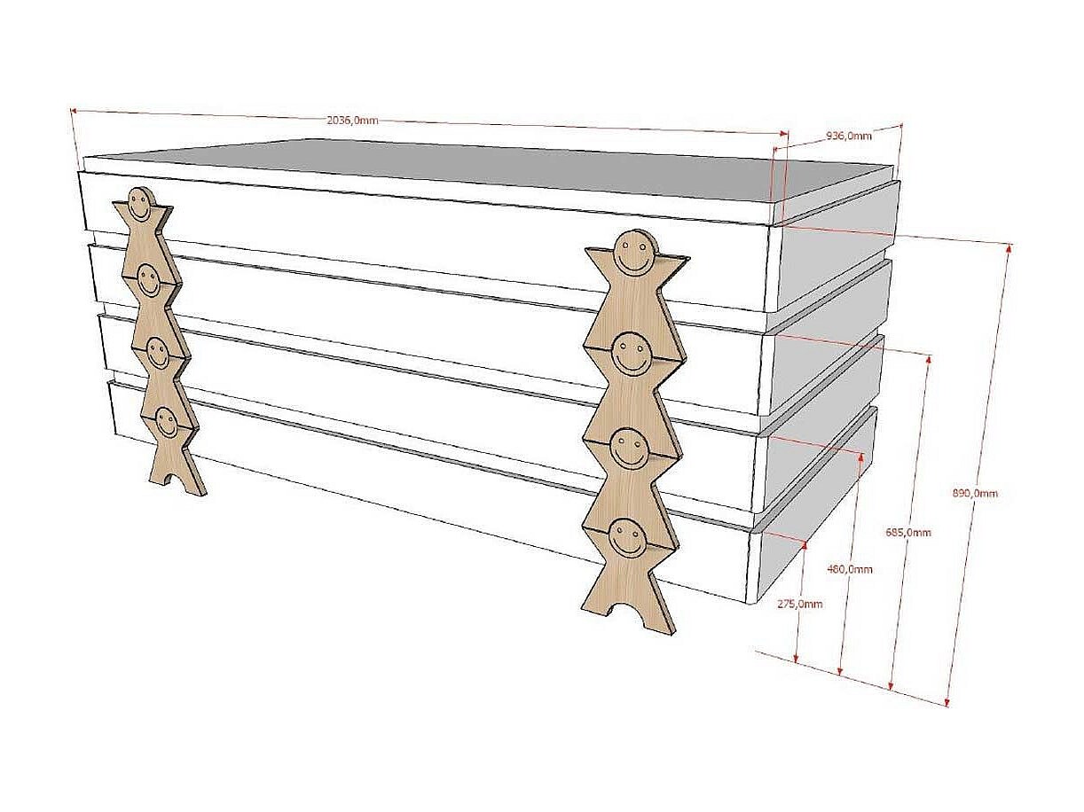 Lit Enfant en Bois "Modulo Smiley" 90x200cm Gris
