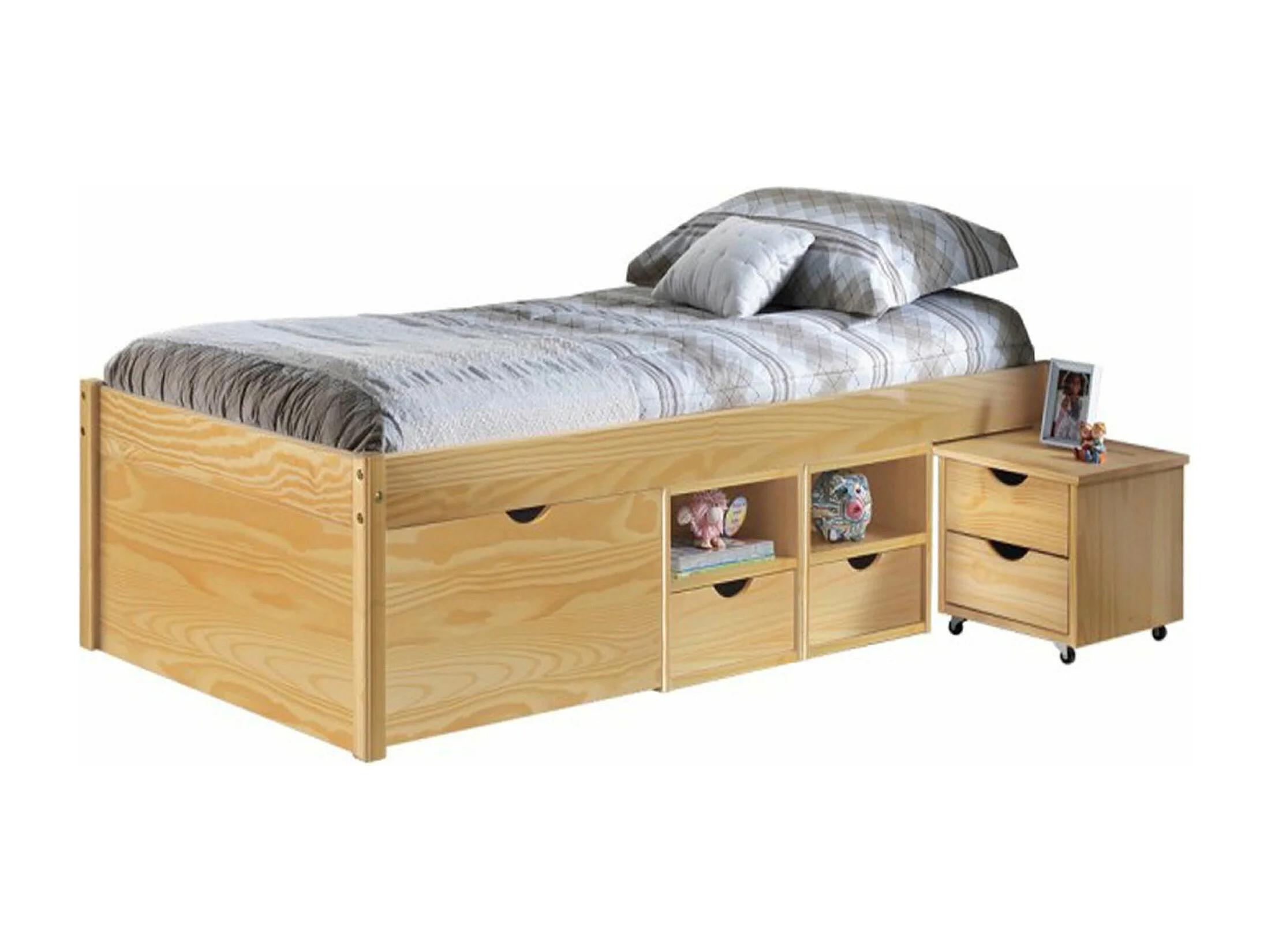 lit multi rangements coloris nature - Dim : L 96 x P 209 x H 47.5 cm