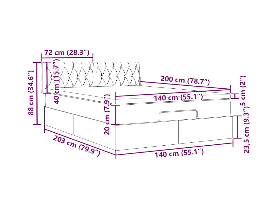 Lit ottoman avec matelas crème 140x200 cm tissu